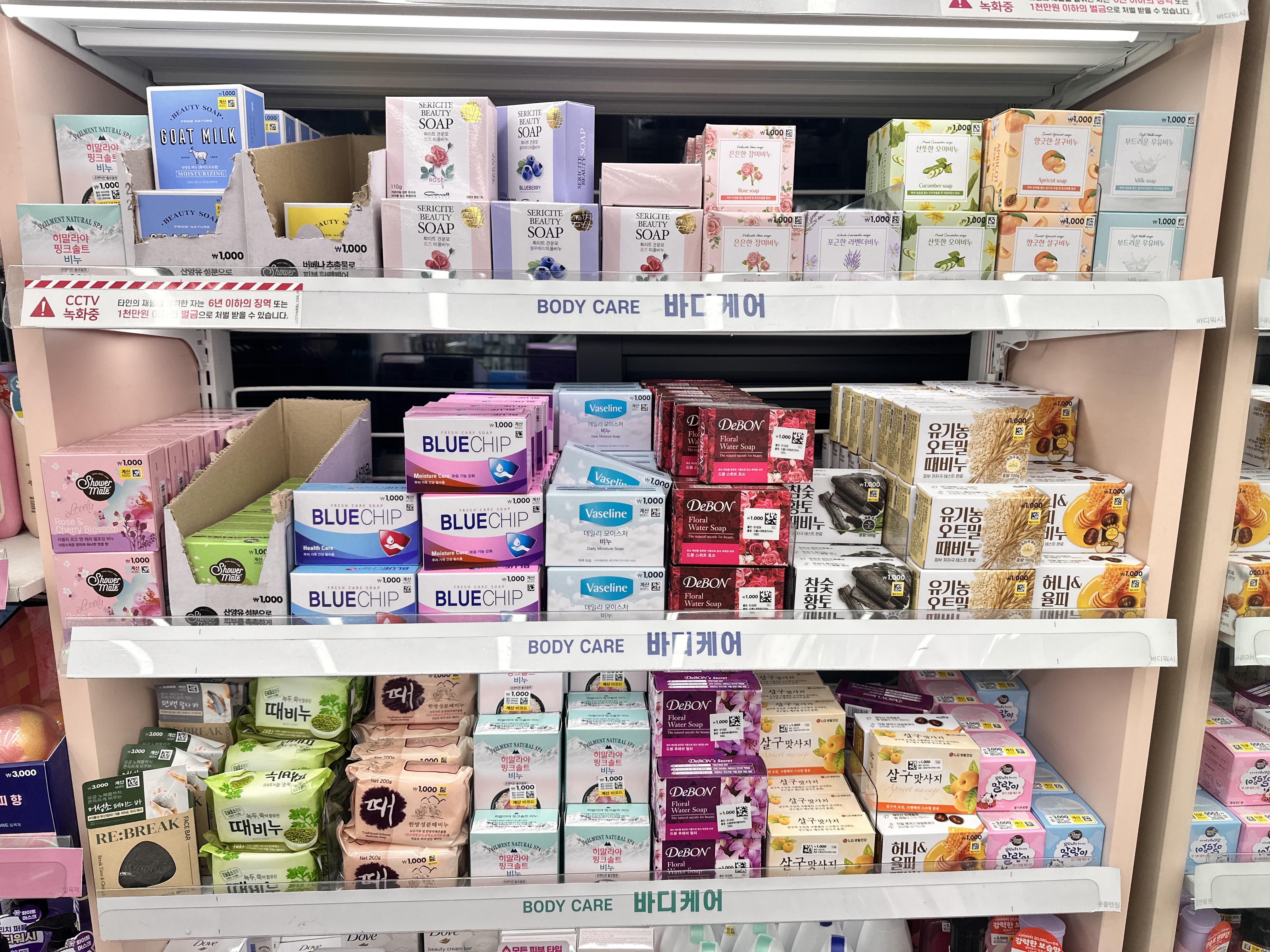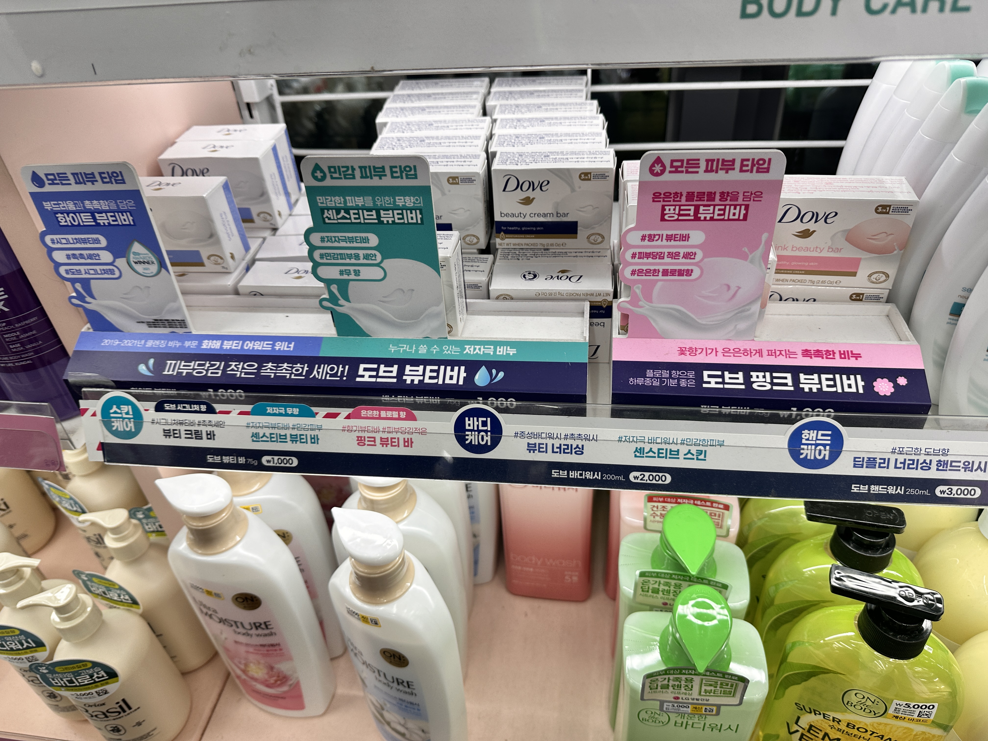 제가 방문한 홍대 2호점 다이소 비누 종류입니다. 이미 유명한 도브 비누도 판매하고 있고요. 화이트 뷰티바 센스티브 뷰티바 핑크 뷰티바 등등이 있고요. 시어버터 뷰티바는 안보이네요. 도브비누 4가지 다 사용해봤는데 핑크 뷰티바와 시어버터 뷰티바는 향이 저랑 좀 안맞아서 쓰는게 힘들었고 시어버터는 당근했던 기억이 있습니다. 센스티브랑 화이트뷰티바가 최곱니다!