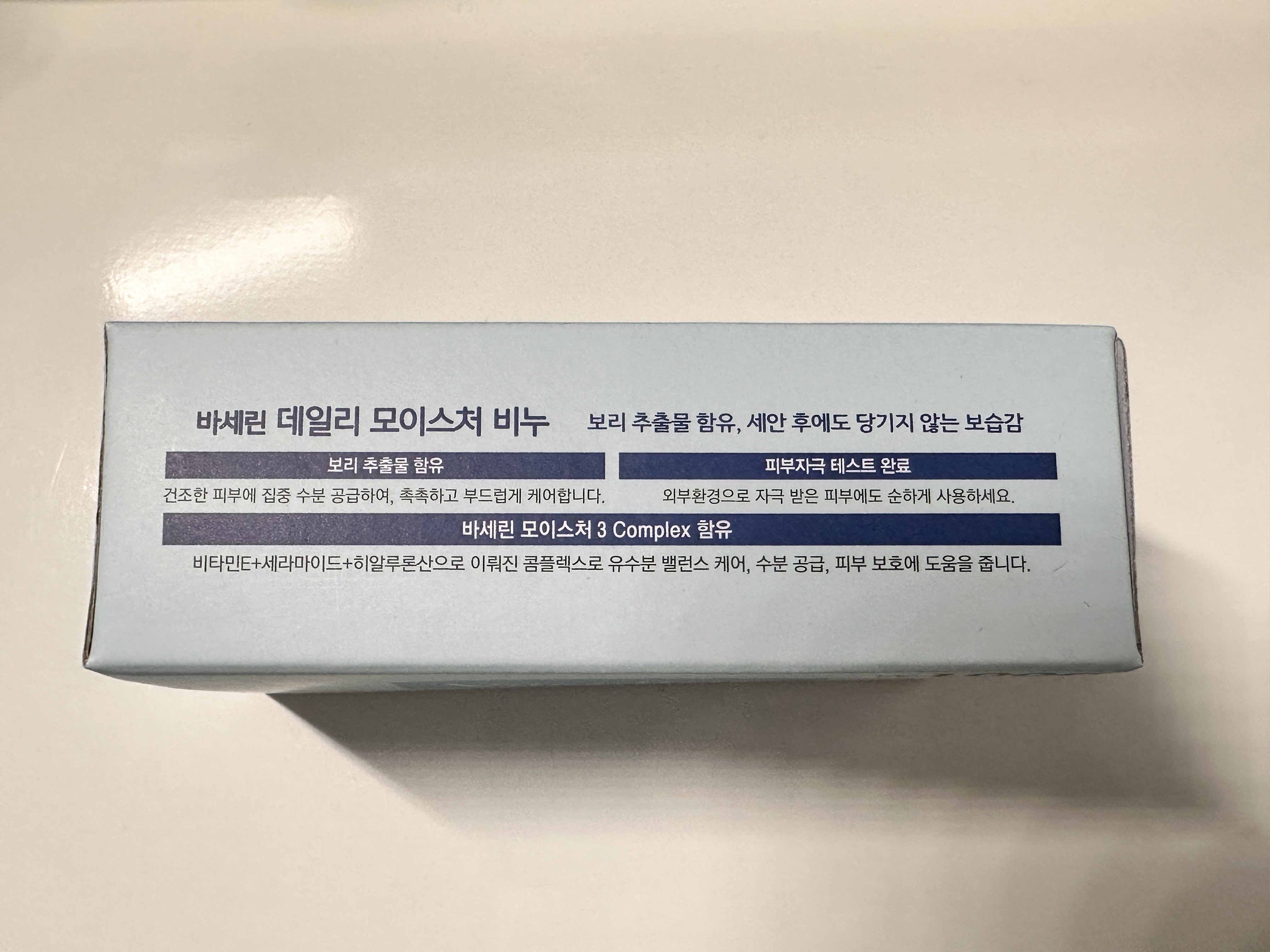 바세린 데일리 모이스처 비누 제품 설명이에요. 피부자극 테스트 완료했고 순하게 사용 가능하다고 하네요. 손씻을때나 빨래용으로 구매한거였는데 도브처럼 몸 씻을때도 한번 사용해봐야겠어요.