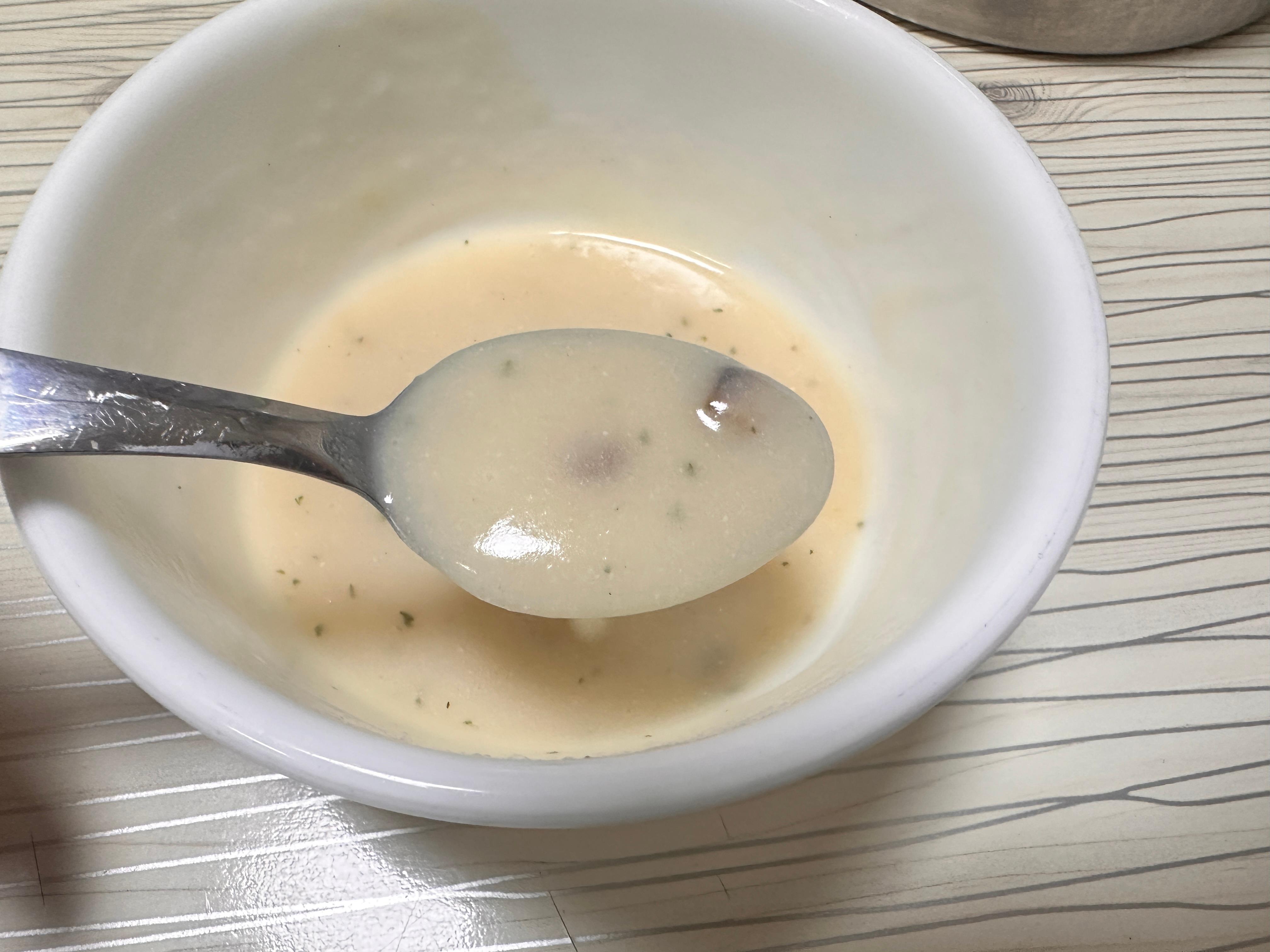 그래도 물을 부워주니 제법 스프다워 졌어요. 잘 저어줬다 기다리면 걸쭉한 스푸형태가 됩니다. 다이소 폰타나 컵수프 맛은요. 약간의 버섯도 씹히고 제법 맛있습니다. 따끈 스프 먹고싶을때 한그릇 간편하게 해먹기에는 컵스프만한게 없네요. 직접 끓인 스프 못지 않게 먹을만 했습니다. 저는 다른 종류 컵스프도 구매하고 싶어요. 다이소 스프 폰타나 컵수프 추천드립니다. 이상 다이소 수프 종류 및 폰타나 그릴드 머쉬룸 크림 컵수프 후기었습니다.