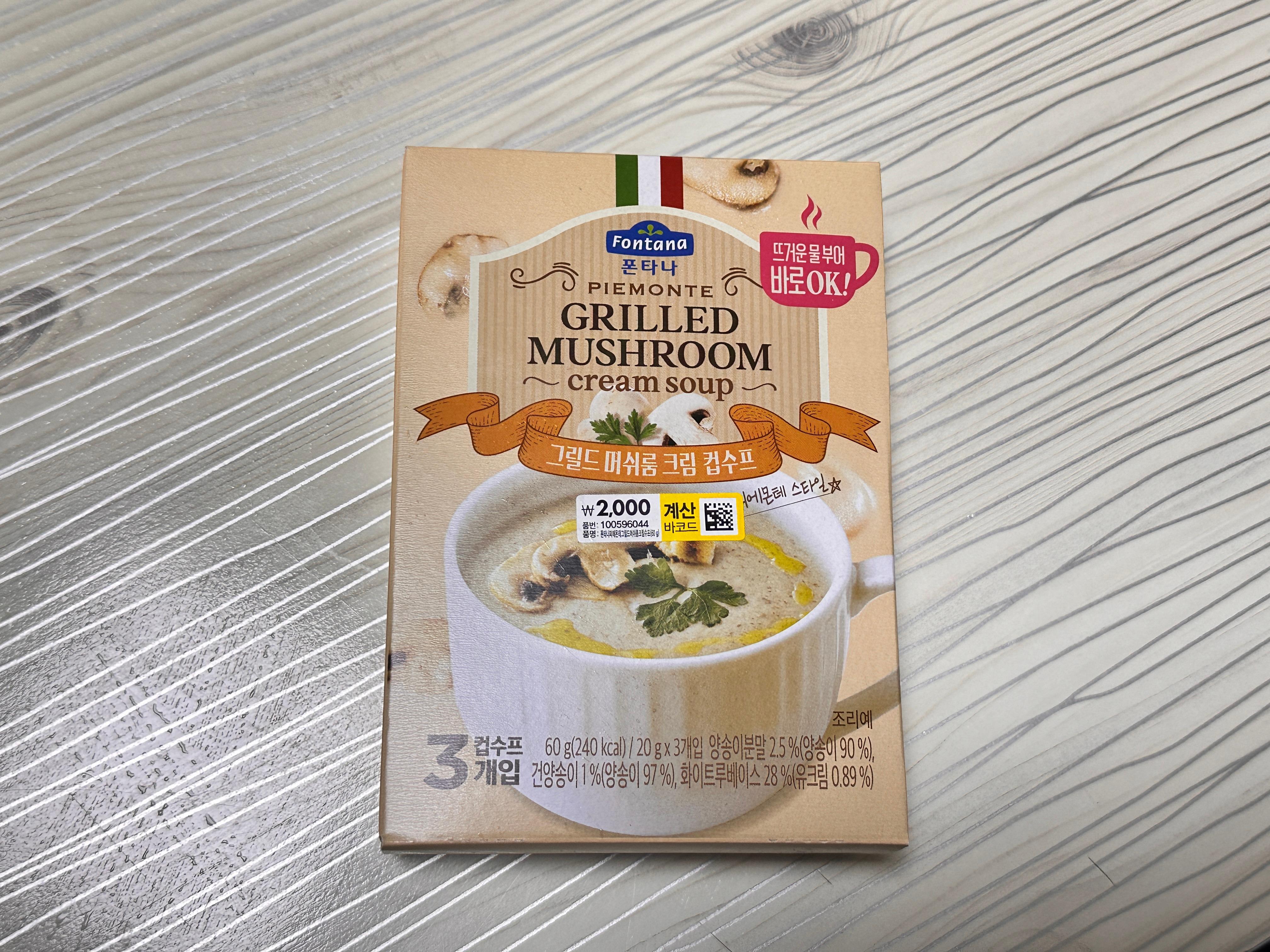 제가 구매한 다이소 스프는 폰타나의 그릴드 머쉬룸 크림 컵수프예요. 가격은 2,000원에 구매했습니다.