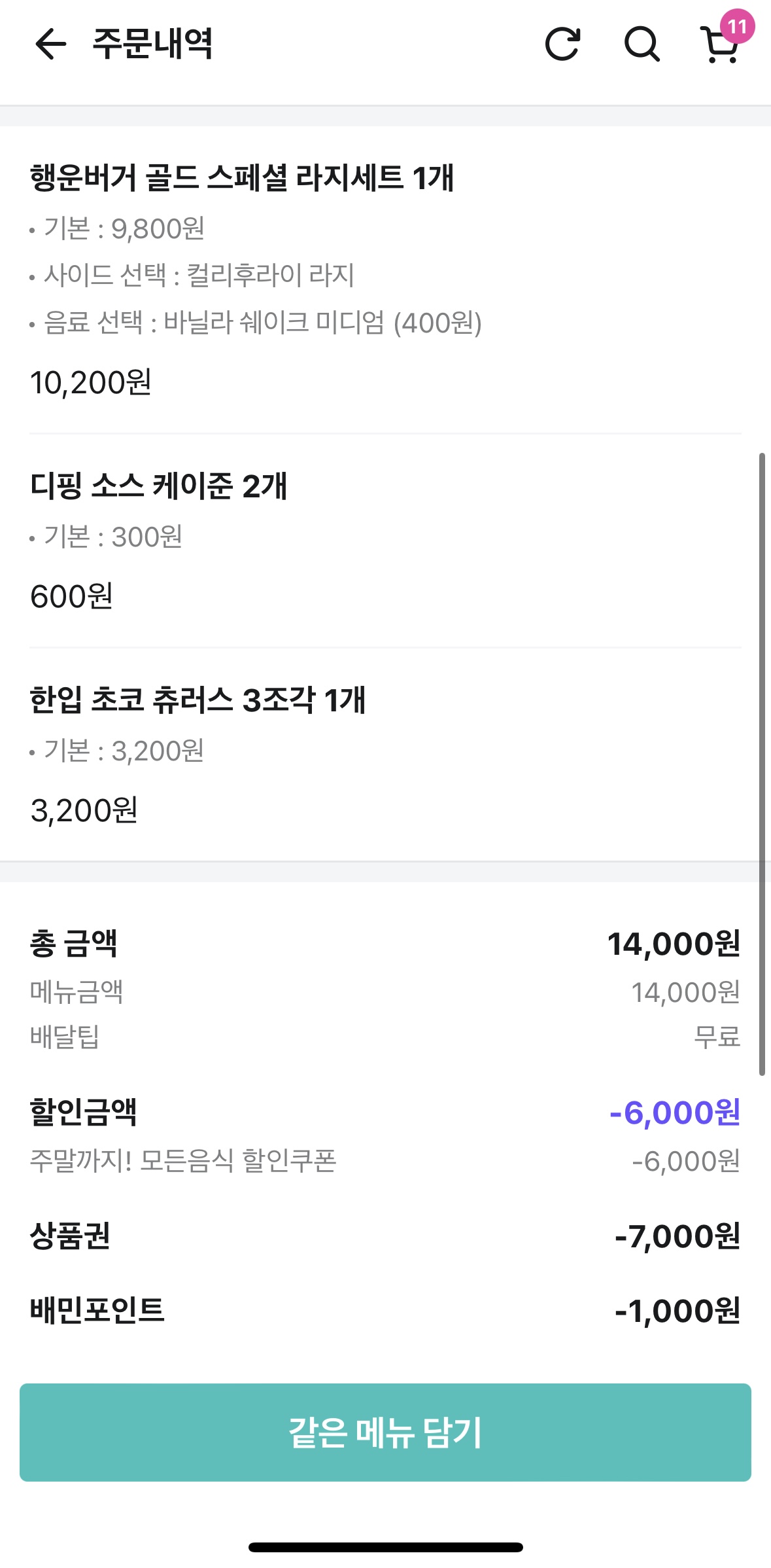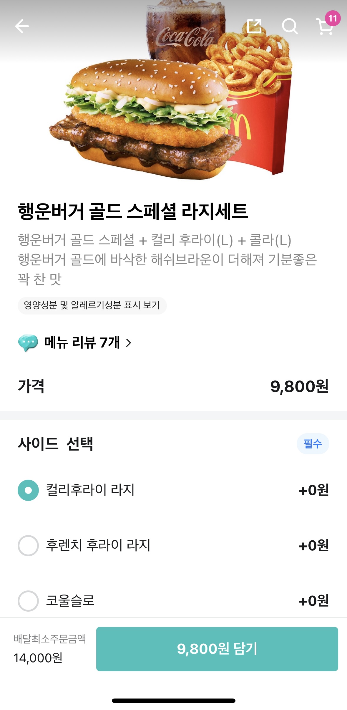 저는 행운버거 골드 스페셜로 주문했고요. 사이즈는 라지로 주문했습니다! 맥도날드는 매장가격이랑 배달 가격이 다르더라고요. 행운버거 골드 스페셜 라지 맥도날드 배달 가격은 9,800원, 일반 행운버거 골드 세트 배달 가격은 8,200원입니다. 햄버거도 이제 저렴하게 한끼 먹을 가격이 아닌..ㅎㅎ 그래도 이번에 주문할때 배민에서 쿠폰을 주더라고요? 덕분에 매우 저렴하게 시켰습니다. 저는 행운버거 골드 스페셜에 바닐라 쉐이크 미디엄으로 음료를 바꿨고요. 한입 초코 츄러스도 새로나온게 궁금해서 주문해봤습니다!