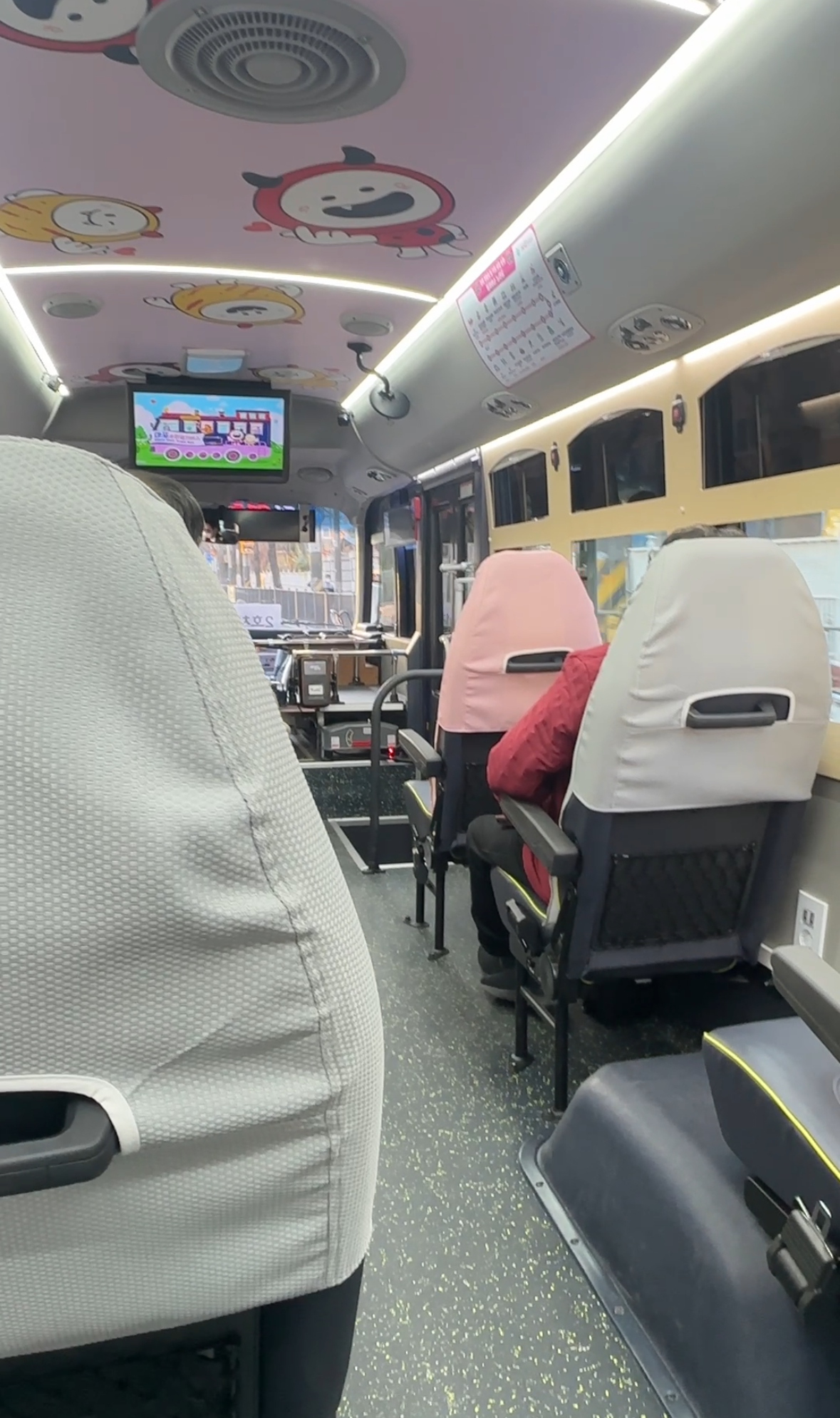 마포순환열차버스 내부 입니다. 내부가 마포의 캐릭터로 보이는 친구로 아기자기하게 꾸며져 있었습니다. 아이들과 함께 타보기 좋을 것 같아요.