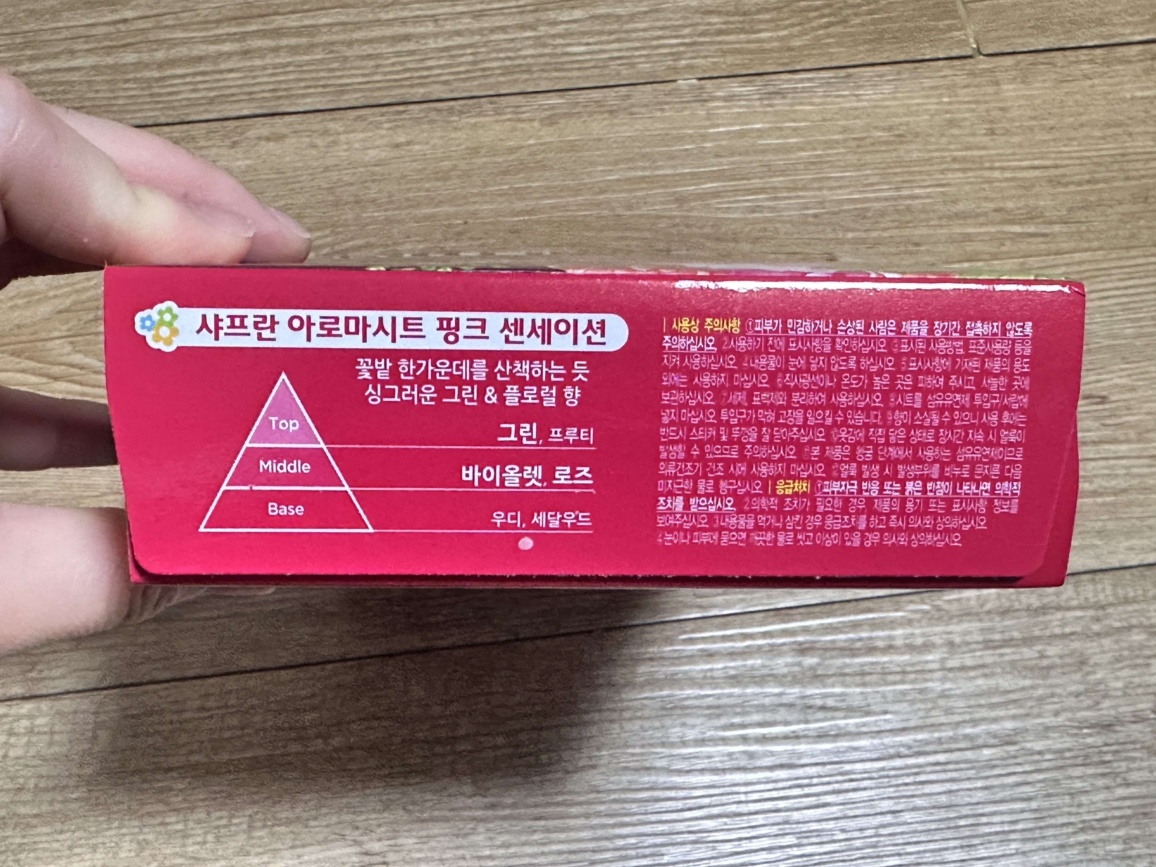 향 노트도 적혀있습니다. 핑크는 싱그러운 플로럴한 향인거 같아요.