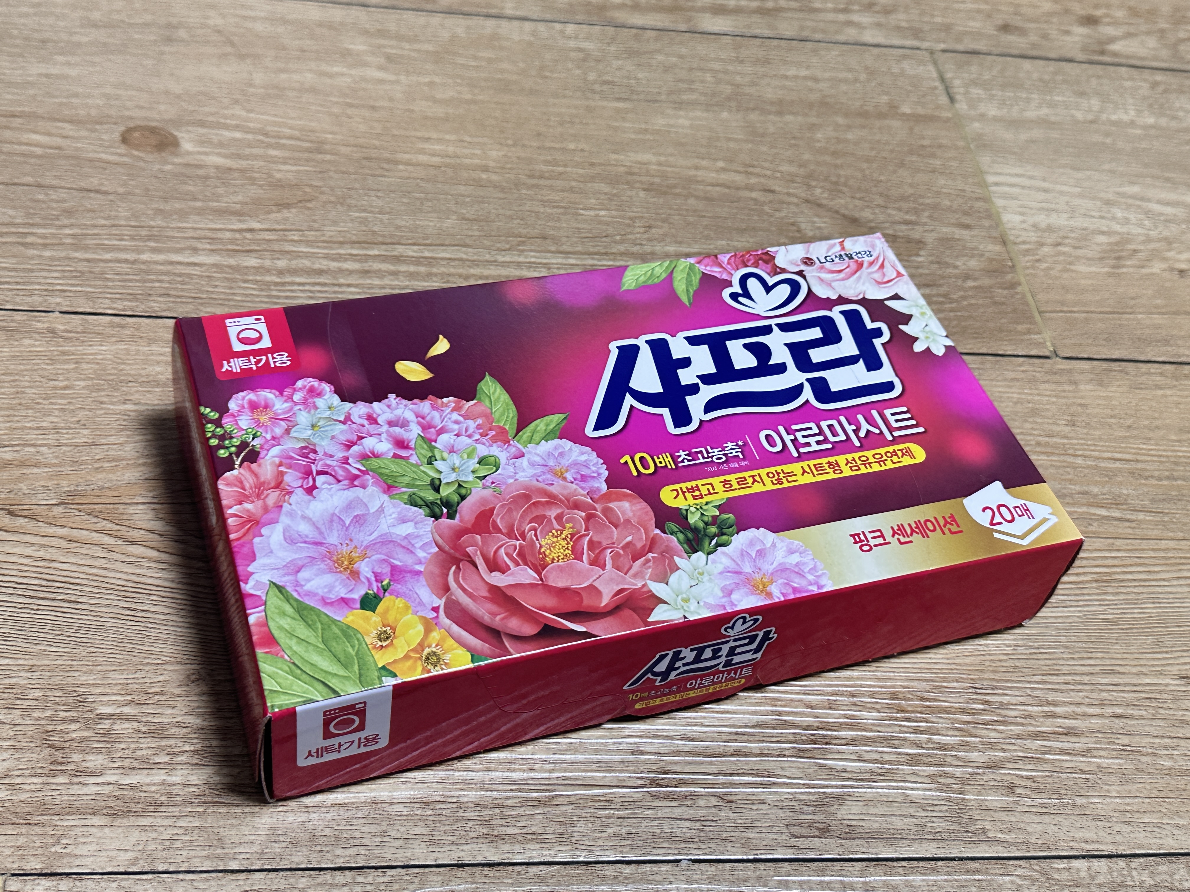 이런 종이 형태 섬유유연제 방향제로도 쓰기 좋더라고요. 보라색 썼을때 옷장이랑 캐리어에도 넣어봤었음. 지난번에도 다이소 섬유유연제 샤프란 아로마시트 잘 써서 다른향으로 재구매인데요. 역시 사용하기편합니다. 그런데 향은 보라색이 더 제 취향이네요. 핑크는 더 플로럴한 꽃향느낌? 다이소 섬유유연제 찾으시면 추천입니다!