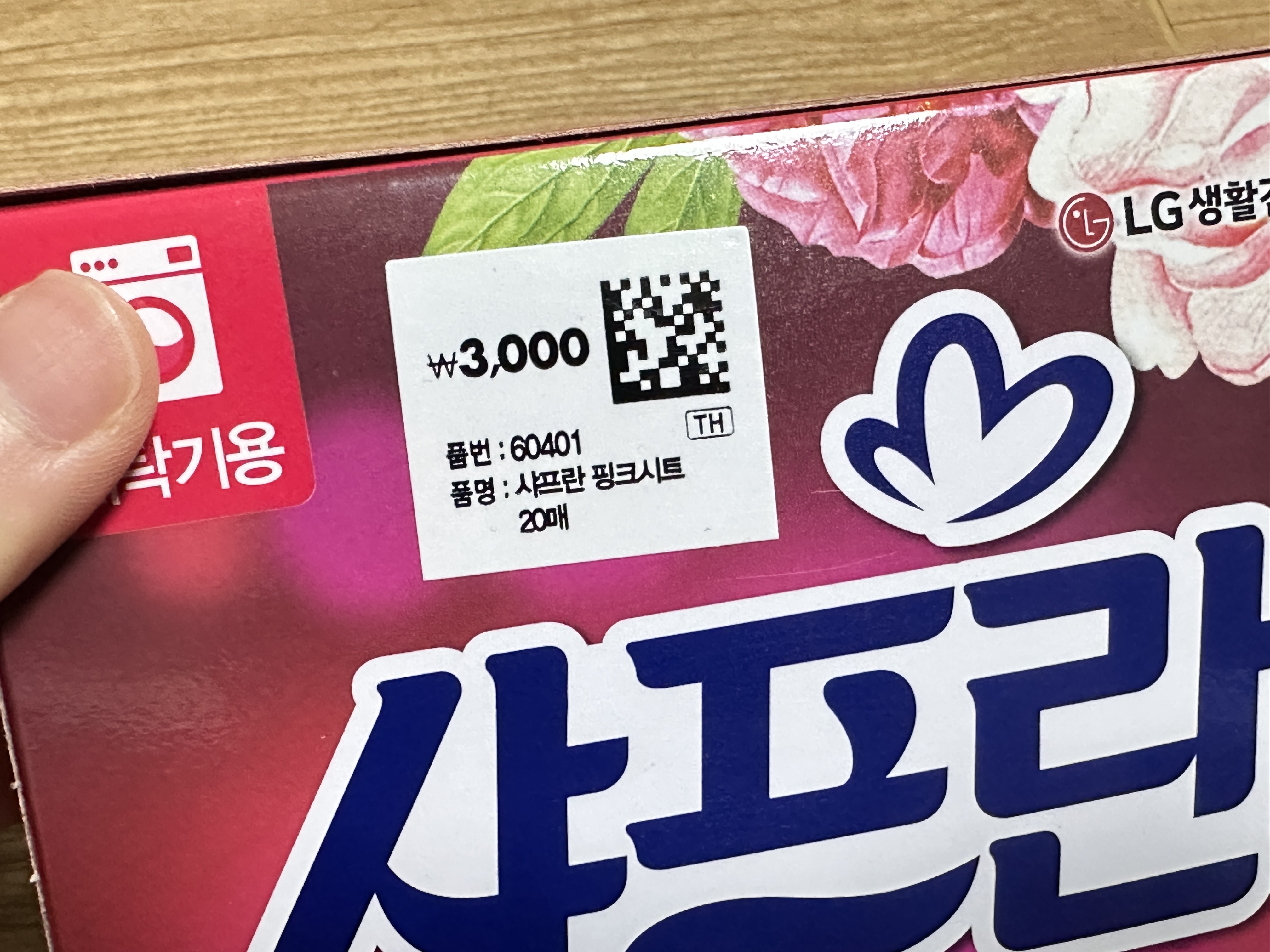 제가 구매한 다이소 섬유유연제 샤프란 아로마시트 핑크센세이션 가격은 3천원입니다. 총 20매가 들어있어요.