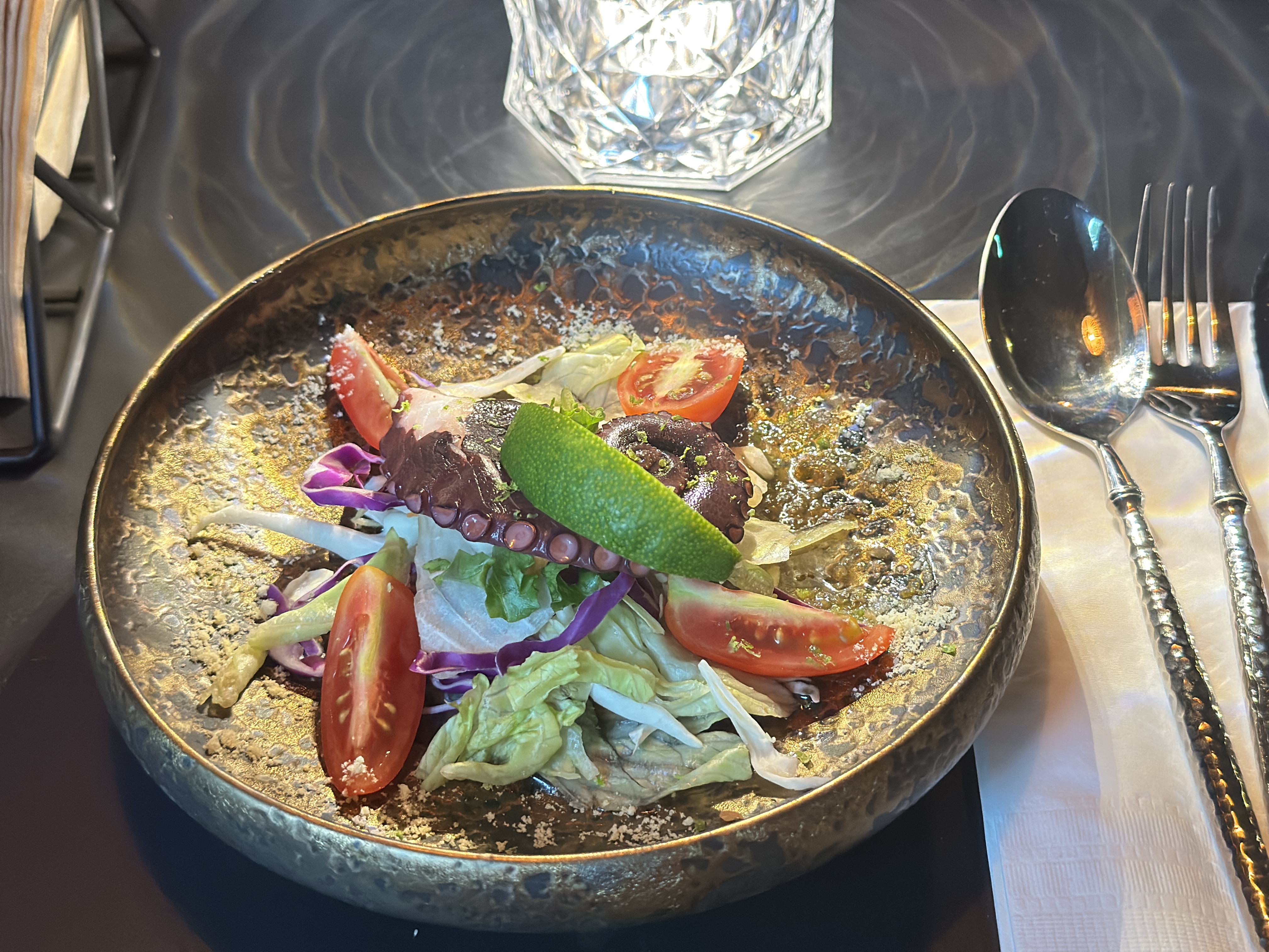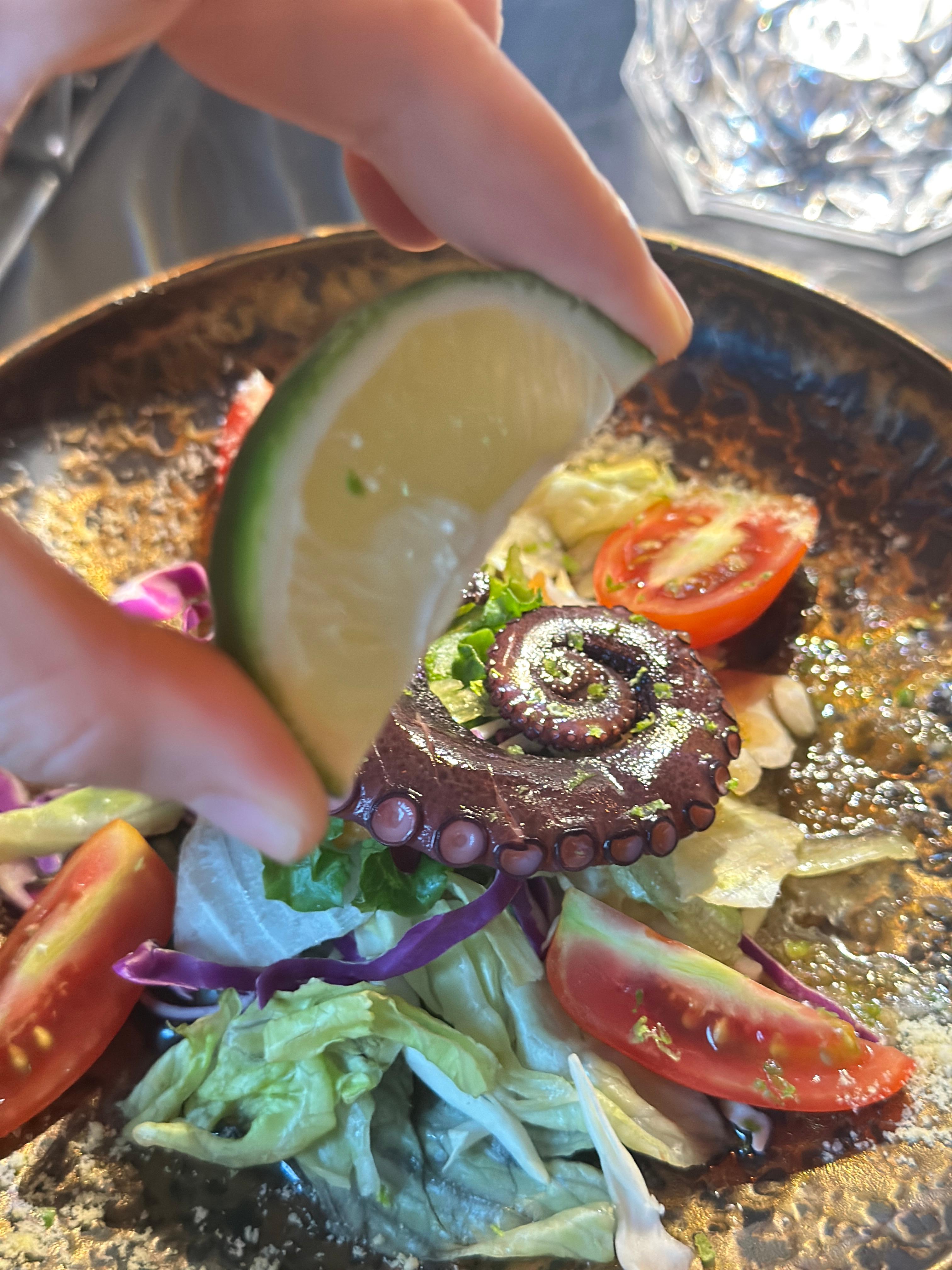 샐러드 위에 올라가있는 라임도 뿌렸습니다. 문어가 아주 부드러웠어요ㅎㅎ