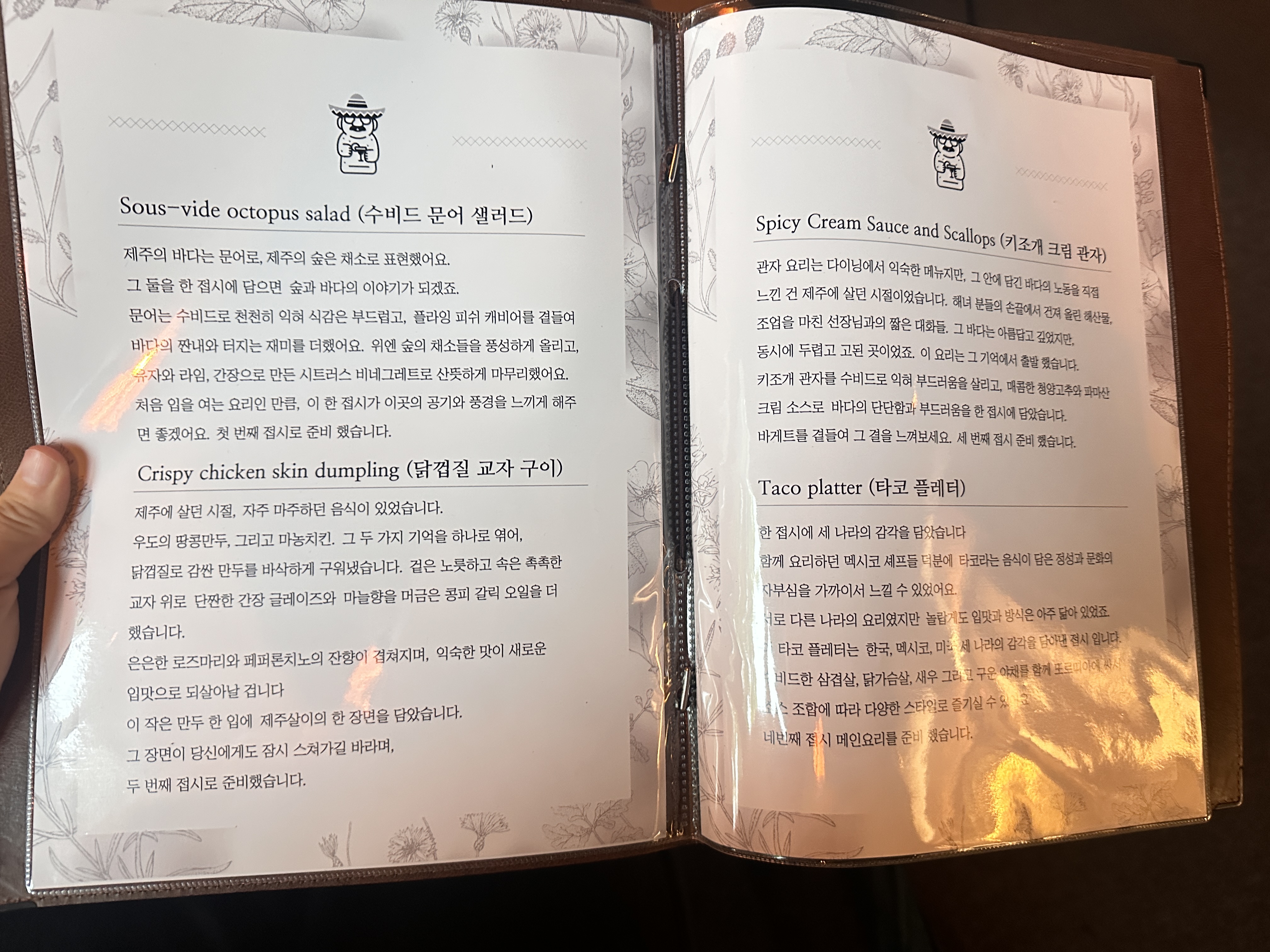 코스요리에 대한 설명도 안내되어 있어서 찍어봤어요. 멕시코속담이 아주 마음에 들어요