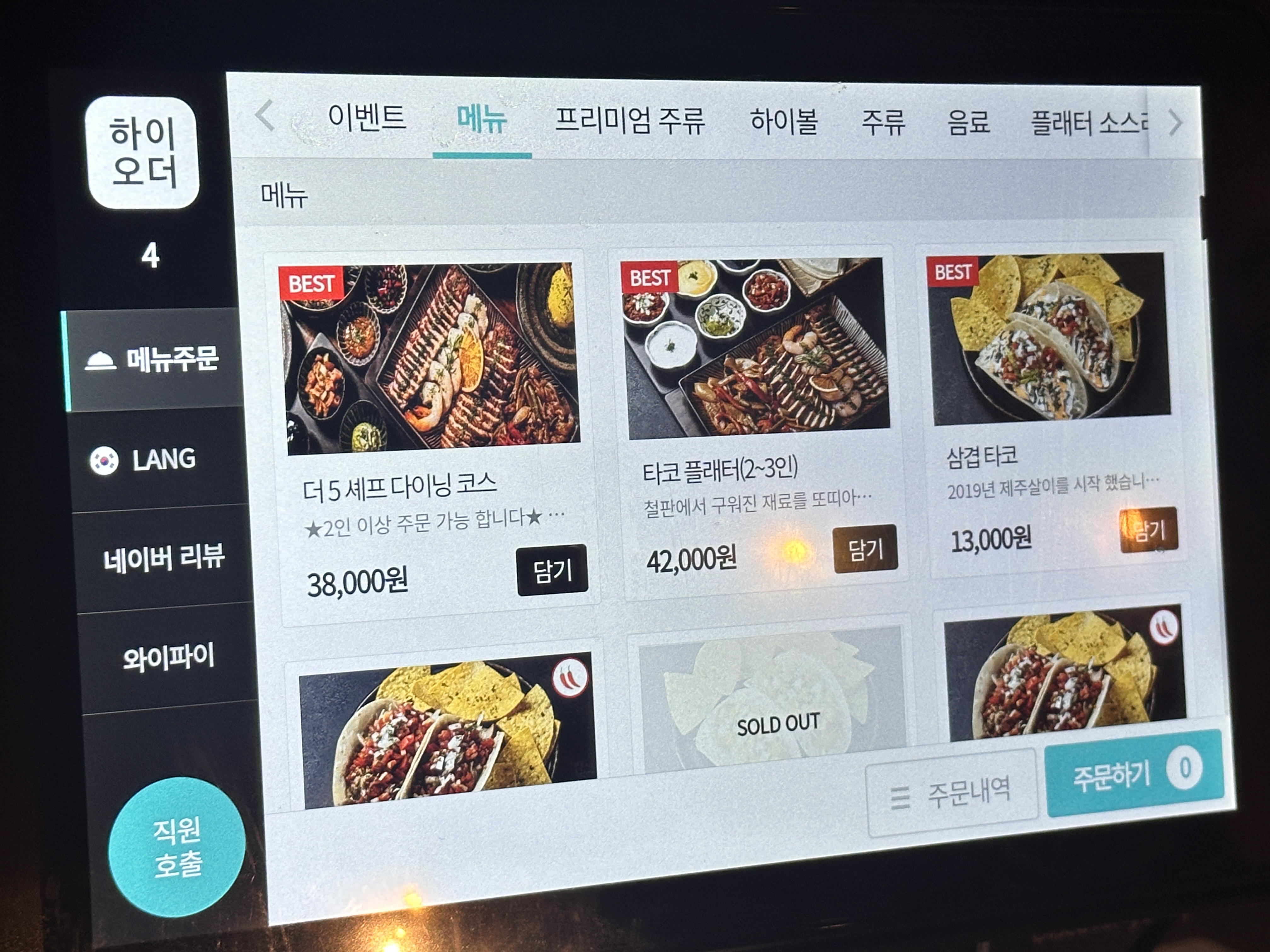 함께 곁들일 데낄라도 주문했어요. 데킬라 마셔봤나 기억이 잘 안나네요…ㅎㅎ