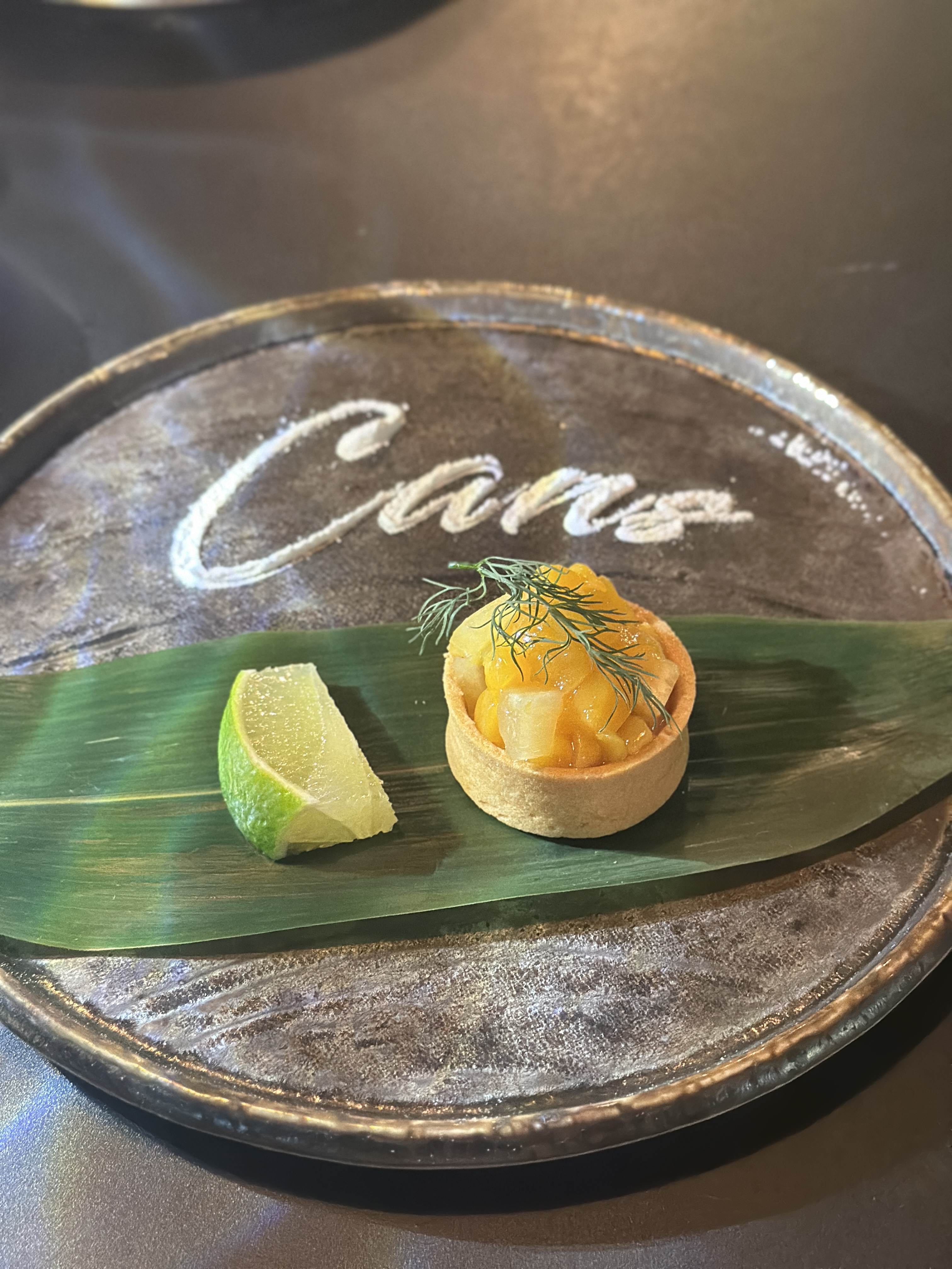 마지막 디저트인 제주 망고타르트입니다. 망고가 잼같은 형태일줄 알았는데 상큼한 망고가 느껴져서 맛있었어요! 홍대 연남동 분위기 좋은 식당 칸스,맥시칸 다이닝 맛집으로 최고였습니다. 특별한날에 방문하기 좋을거 같아요!! 연남동 맛집으로 추천드립니다.