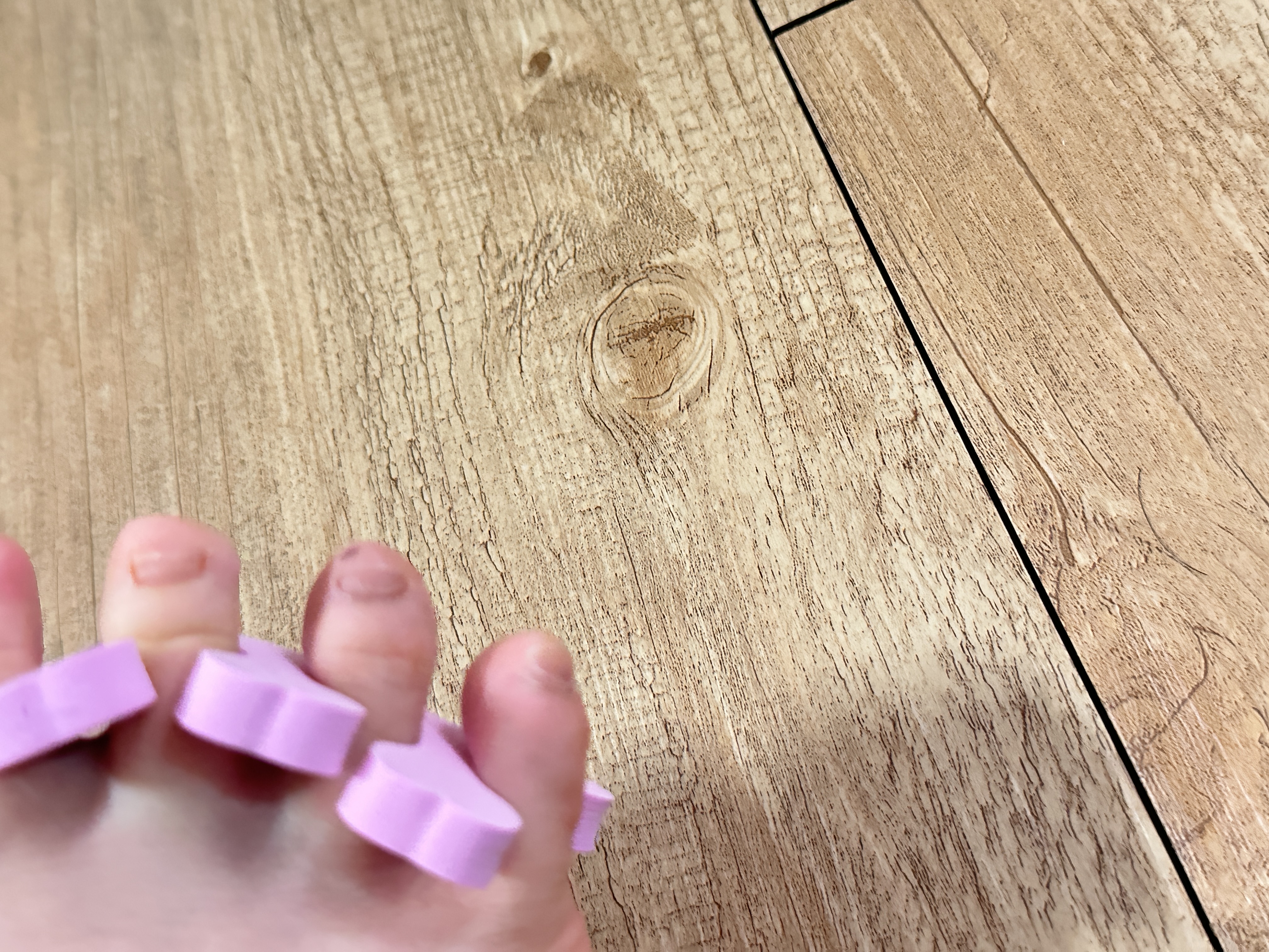 다이소 발가락 패드는 이렇게 생겼고요. 냄새는 어릴때 놀던 놀이방의 스펀지? 냄새같은게 났어요 ㅋㅋㅋ