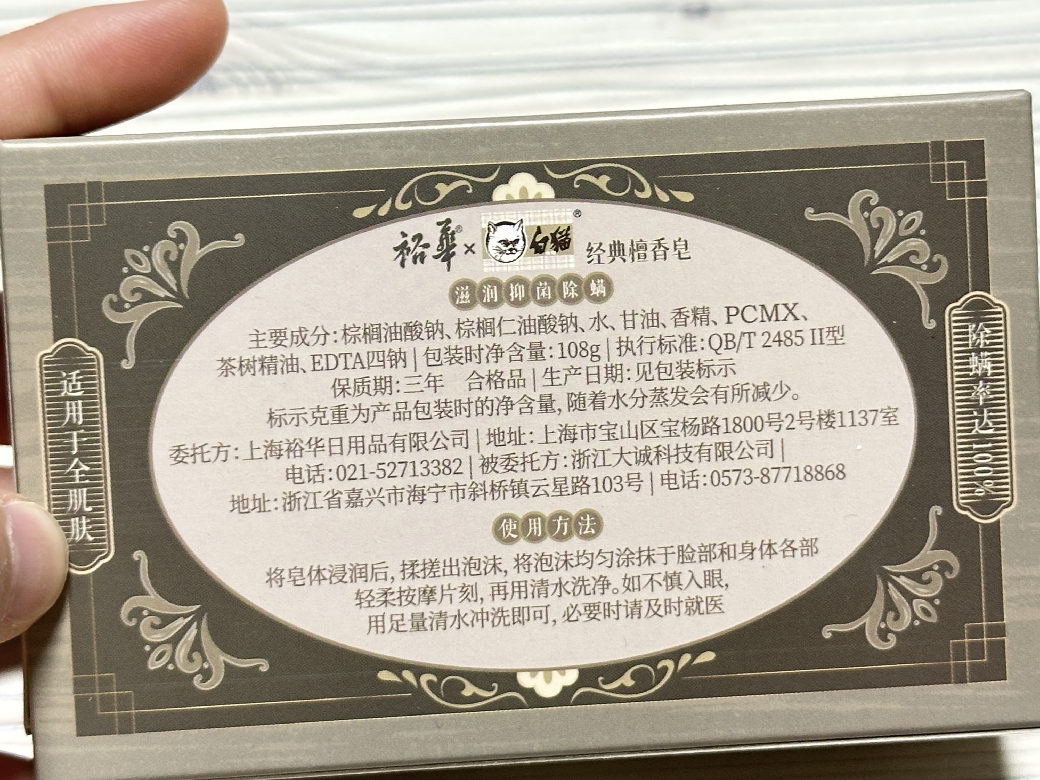 중국에서 구매한, 샌달우드 비누 뒷면입미다.