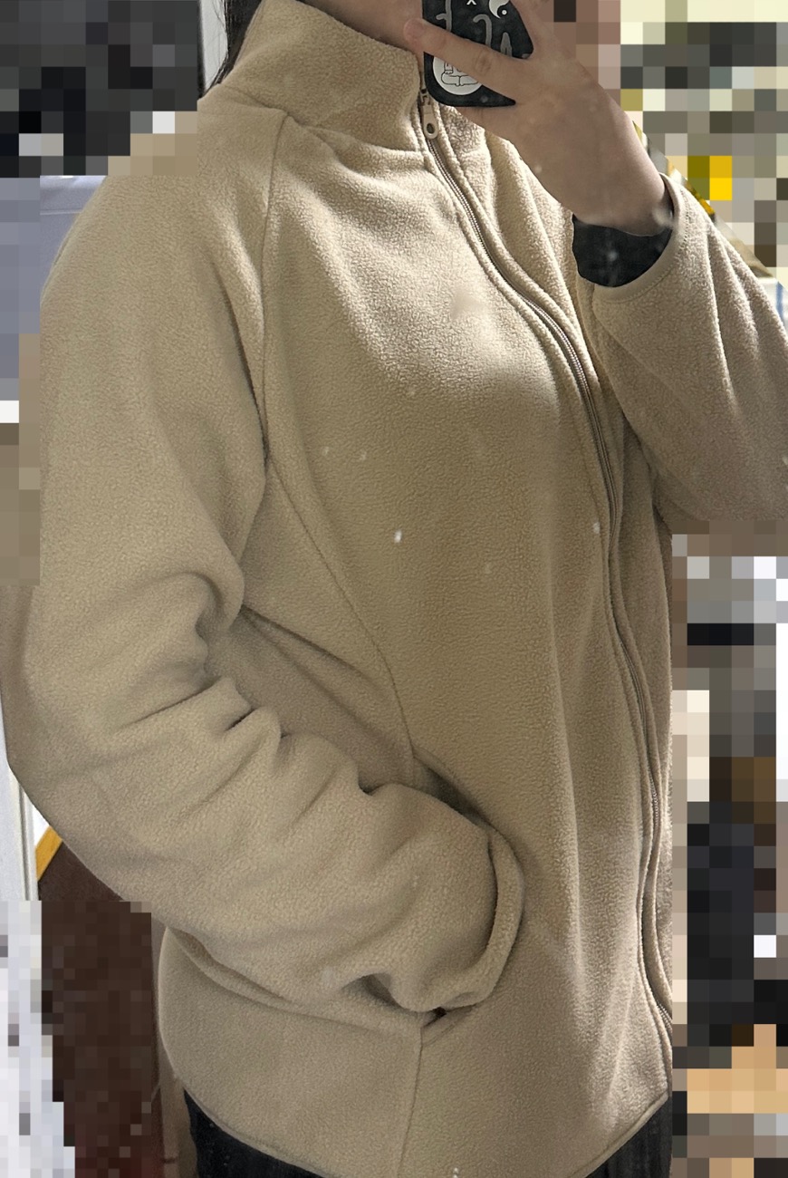 처음엔 다이소 매장에서 플리스를 구경하는데 그레이 색상 플리스가 더 괜찮아 보이더라고요. 그런데 색상별로 사이즈가 하나씩 나오는건지 s사이즈 밖에 없어서 베이지 컬러로 구매했습니다. S 들어가긴 하는데 넉넉하게 입고싶었음