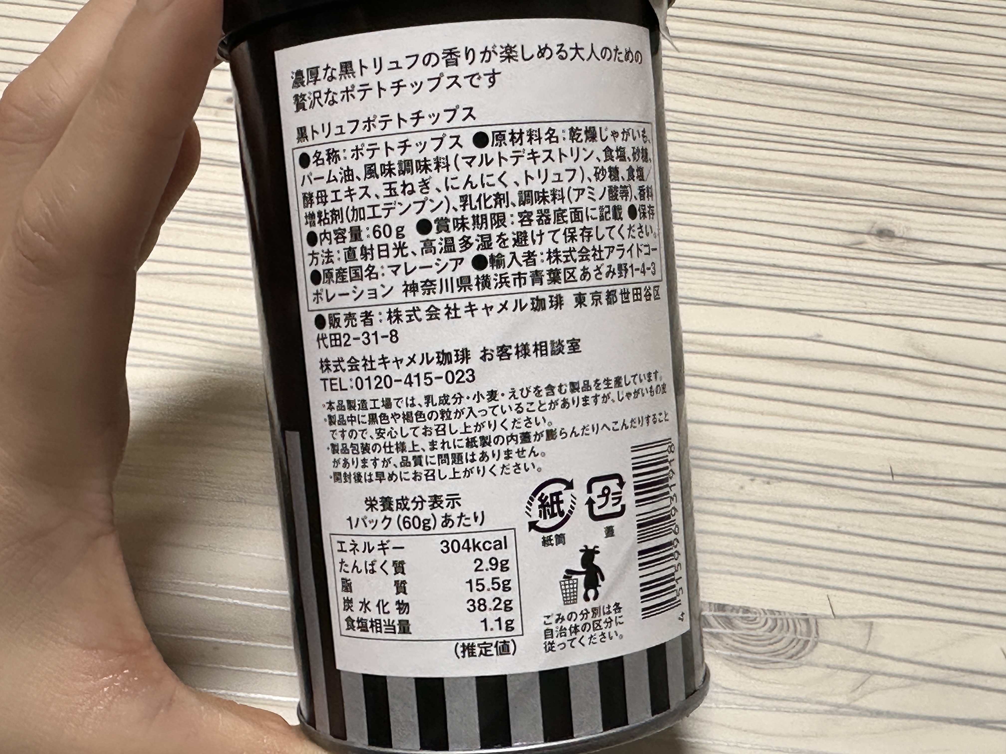 일본 여행을 다녀온 직장 동료가 과자를 몇 개 선물로 줬습니다. 그중 하나가 칼디 블랙 트러플 포테이토 칩이었습는데요~ 통 형태라 보관하기는 편한 편이었습니다. 리뷰 남겨볼게요.