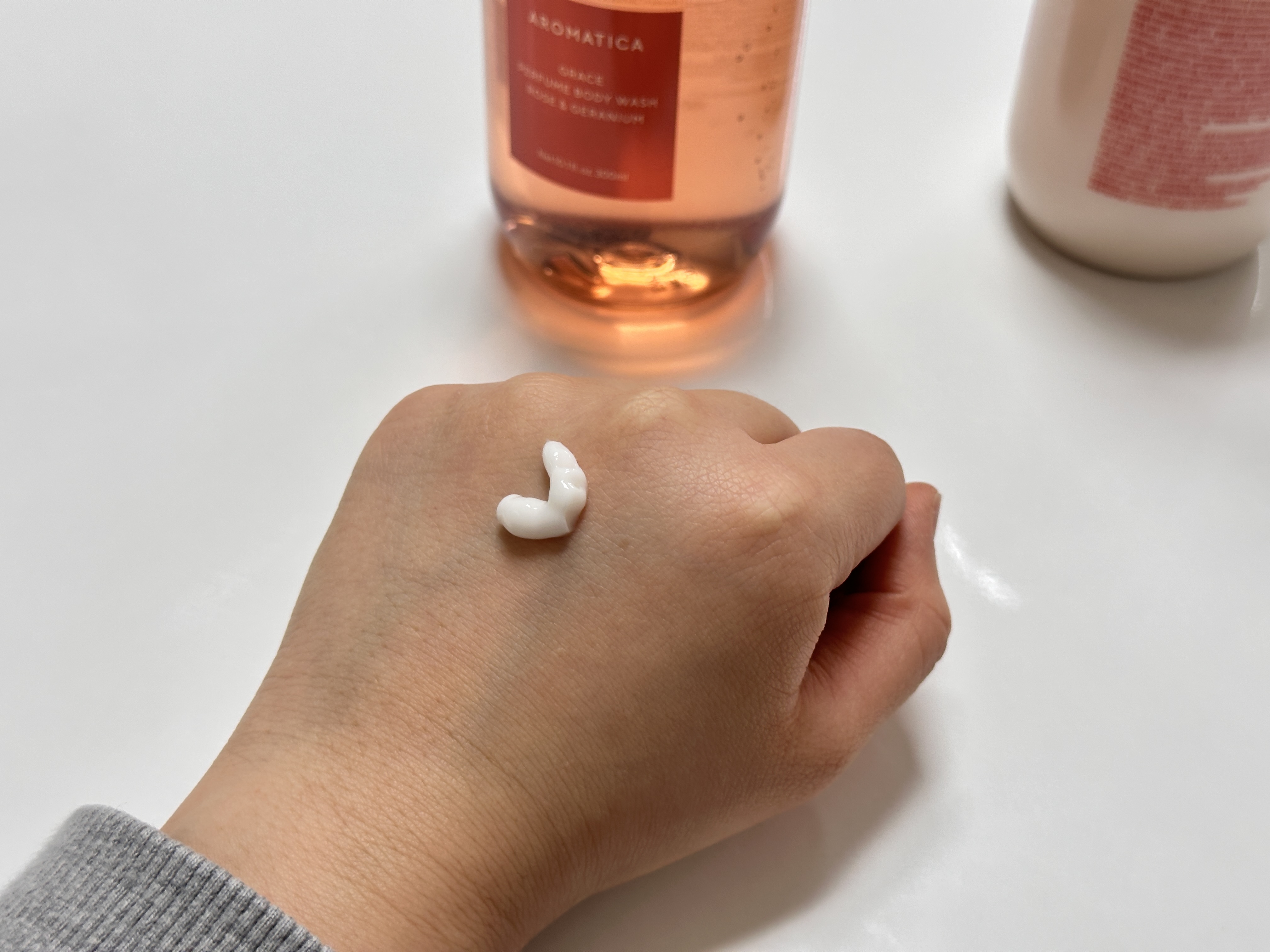 먼저 아로마티카 로즈퍼퓸 바디워시입니다. 마침 바디워시가 떨어져서 바로 사용해보고 있는데요. 기존에 쓰던 바디워시보다 거품도 훨씬 풍성하게 나고 인위적이지 않은 은은한 장미향이 샤워할때마다 기분이 좋더라고요.