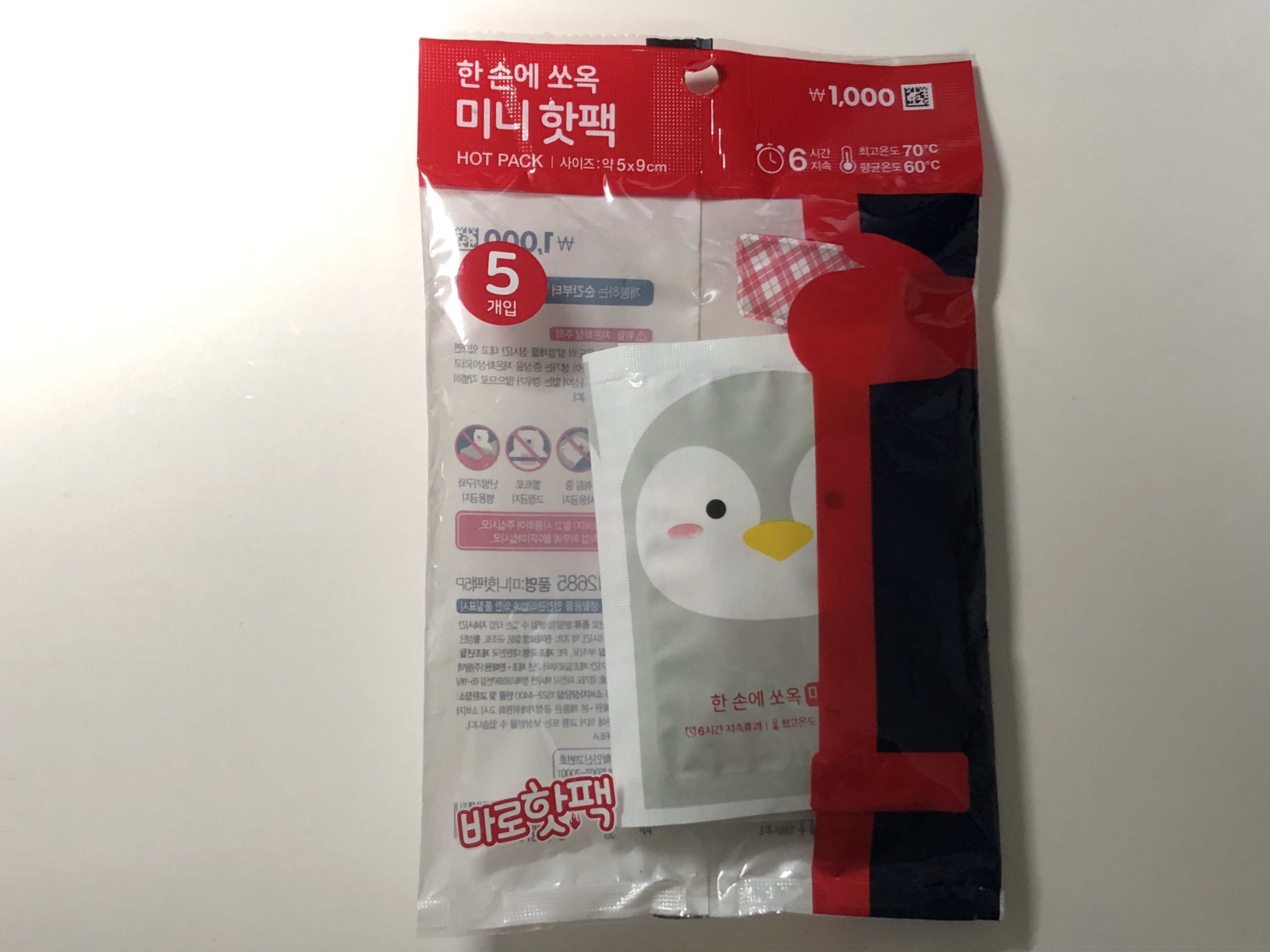 원래 알던 핫팩은 이 정도 그립감이 아니었는데... 최소 펭귄 패키지 정도는 되는 크기라고 생각한 저를 반성합니다.