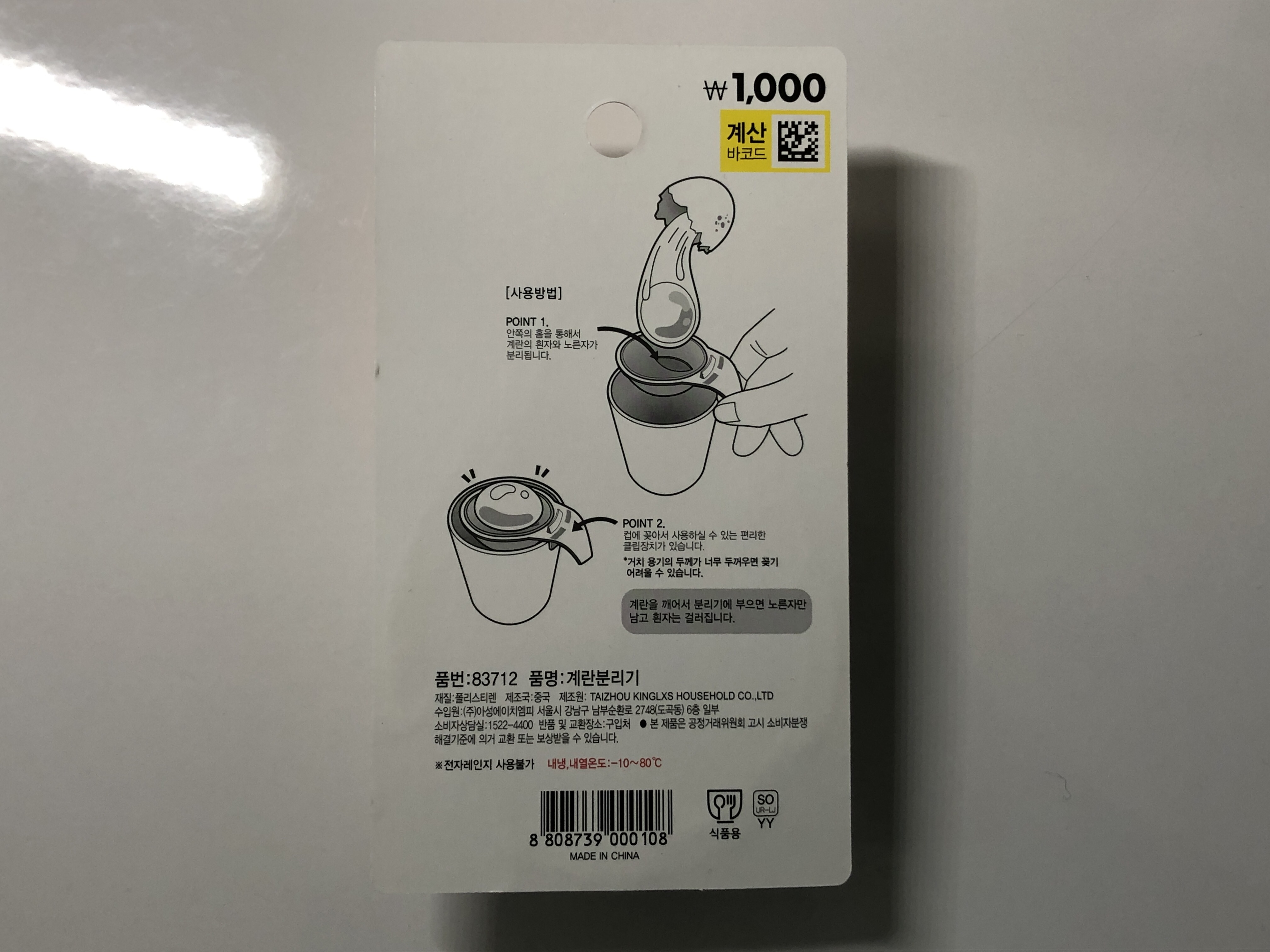아무튼!! 드디어 들였습니다. 다이소 노른자 분리기!! 가격은 1,000원입니다!