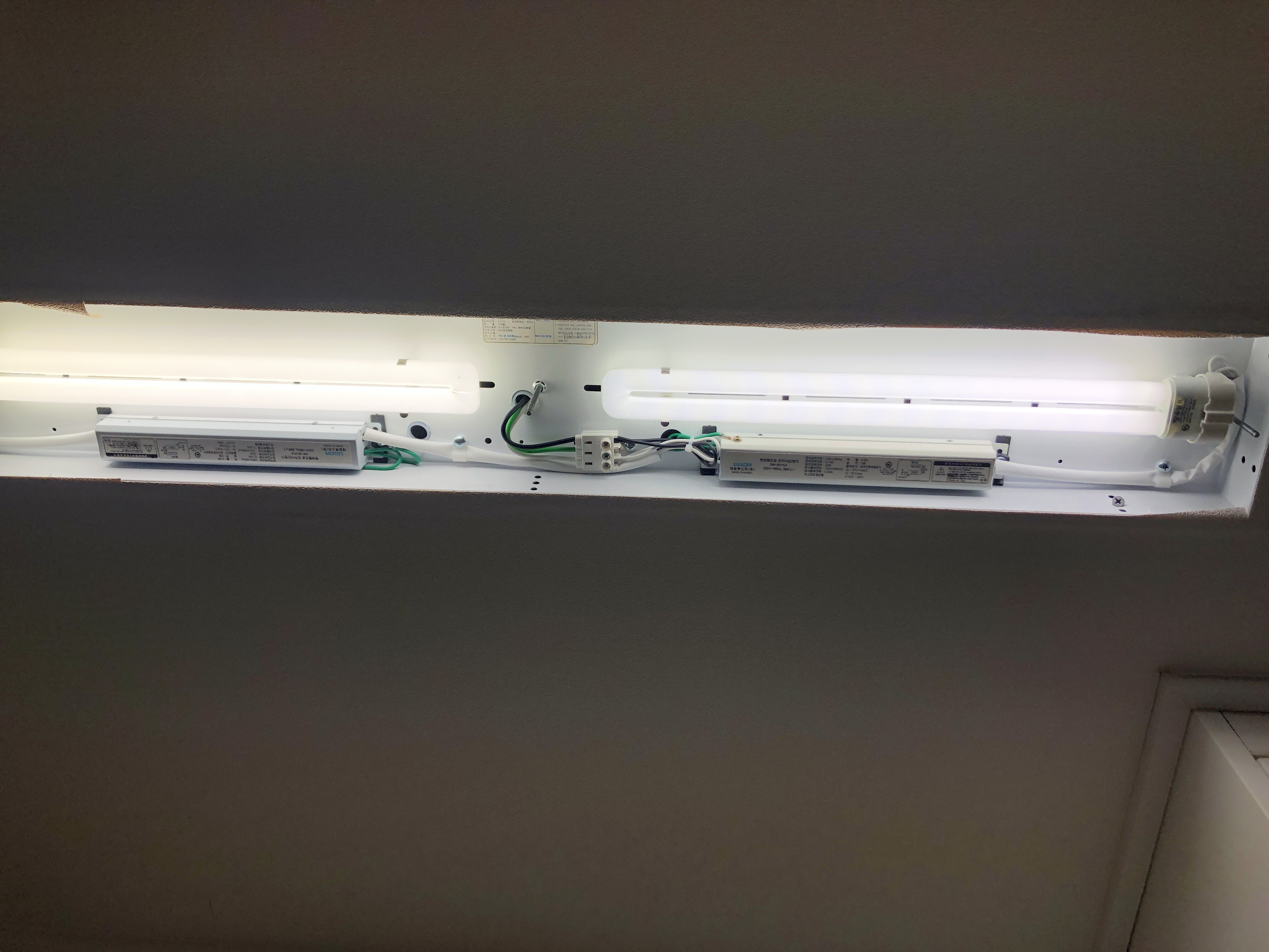 그리고 긴 형광등 갈 때 초반엔 형광등 빛이 반쯤 들어오고 반은 어둡길래