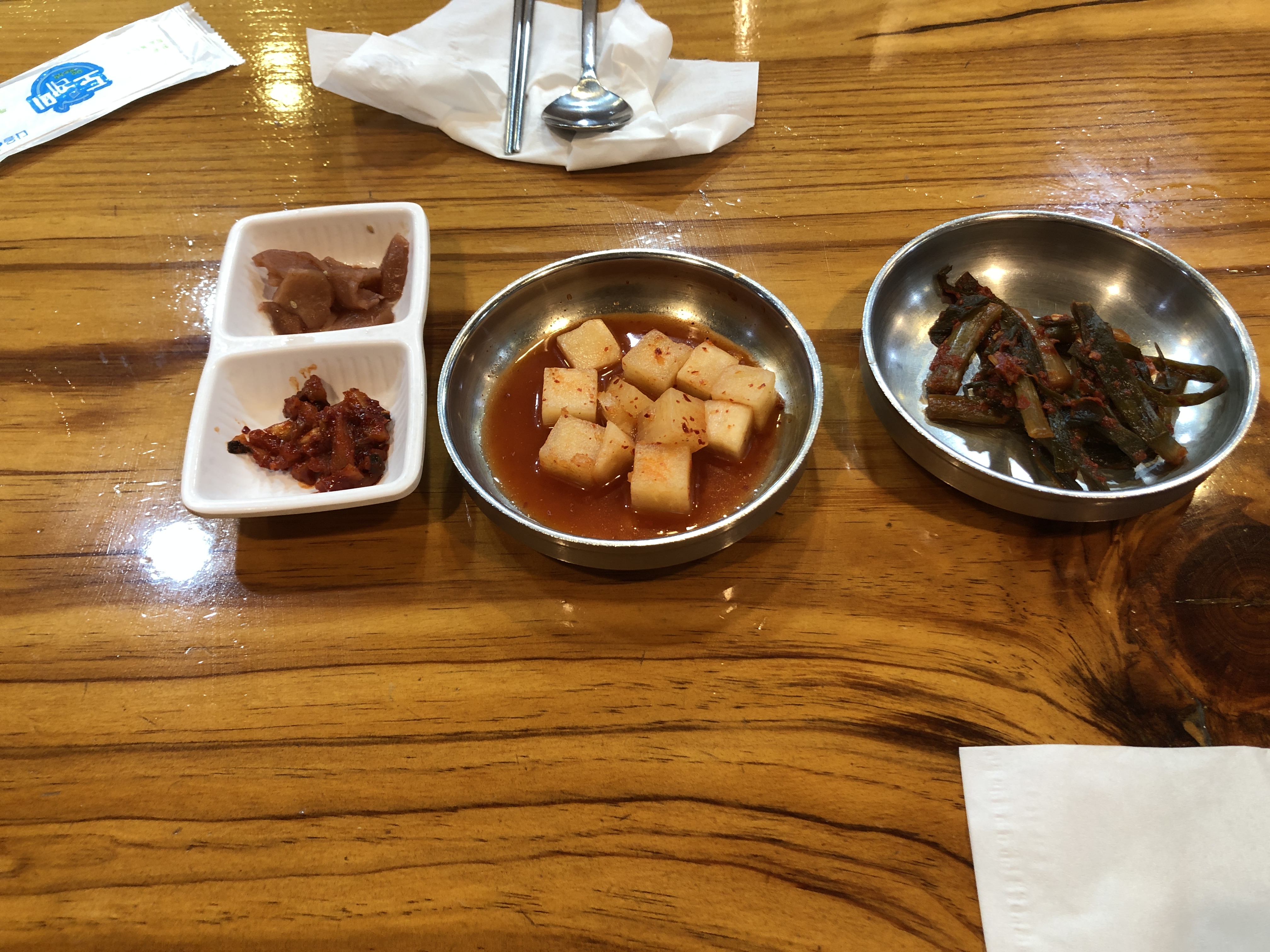 밑반찬입니다! 갓김치 같은 파김치(추정)가 있었어요. 맛있었는데 뭔지는 모르겠어요 ㅎ_ㅎ