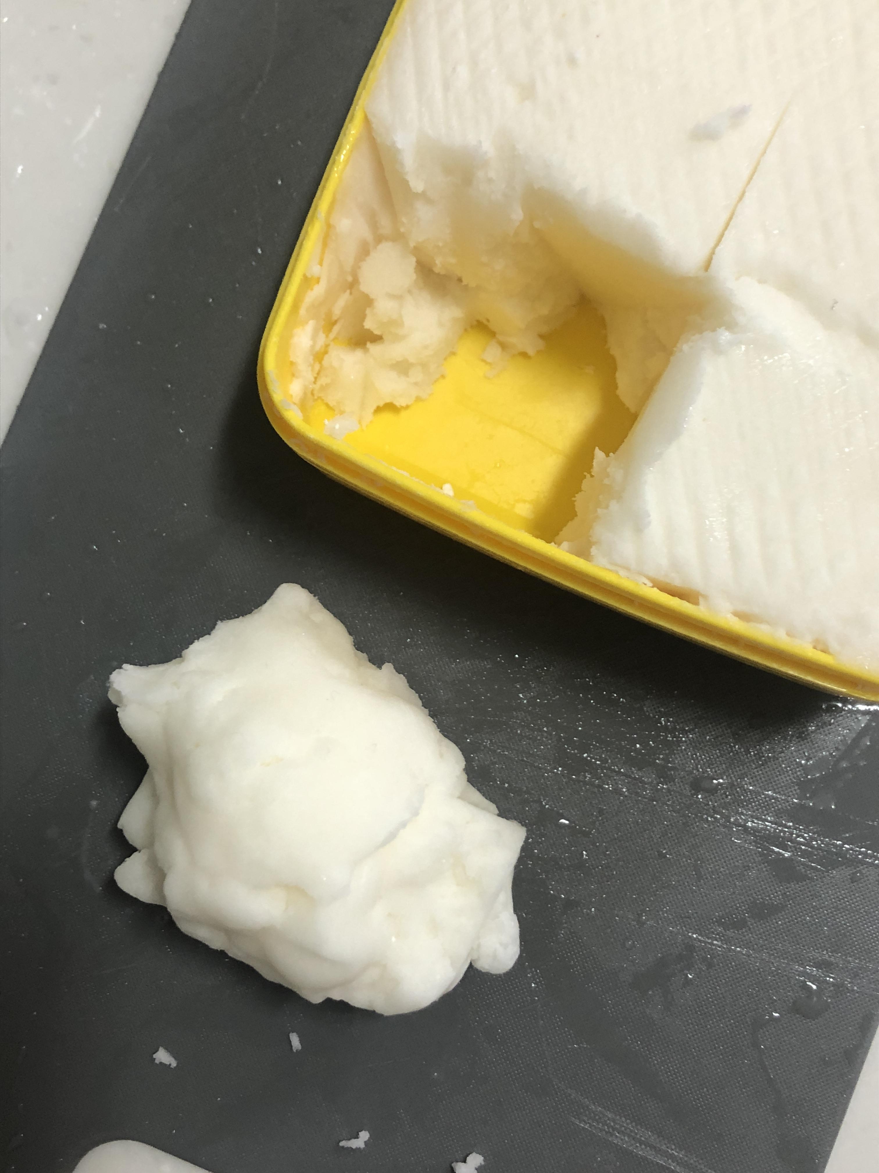 ㅋㅋㅋ이거 어떻게 소분 하나요?? 대충 주방칼로 파내서 똘똘 뭉쳐 비누처럼 보이게 만들었습니다.