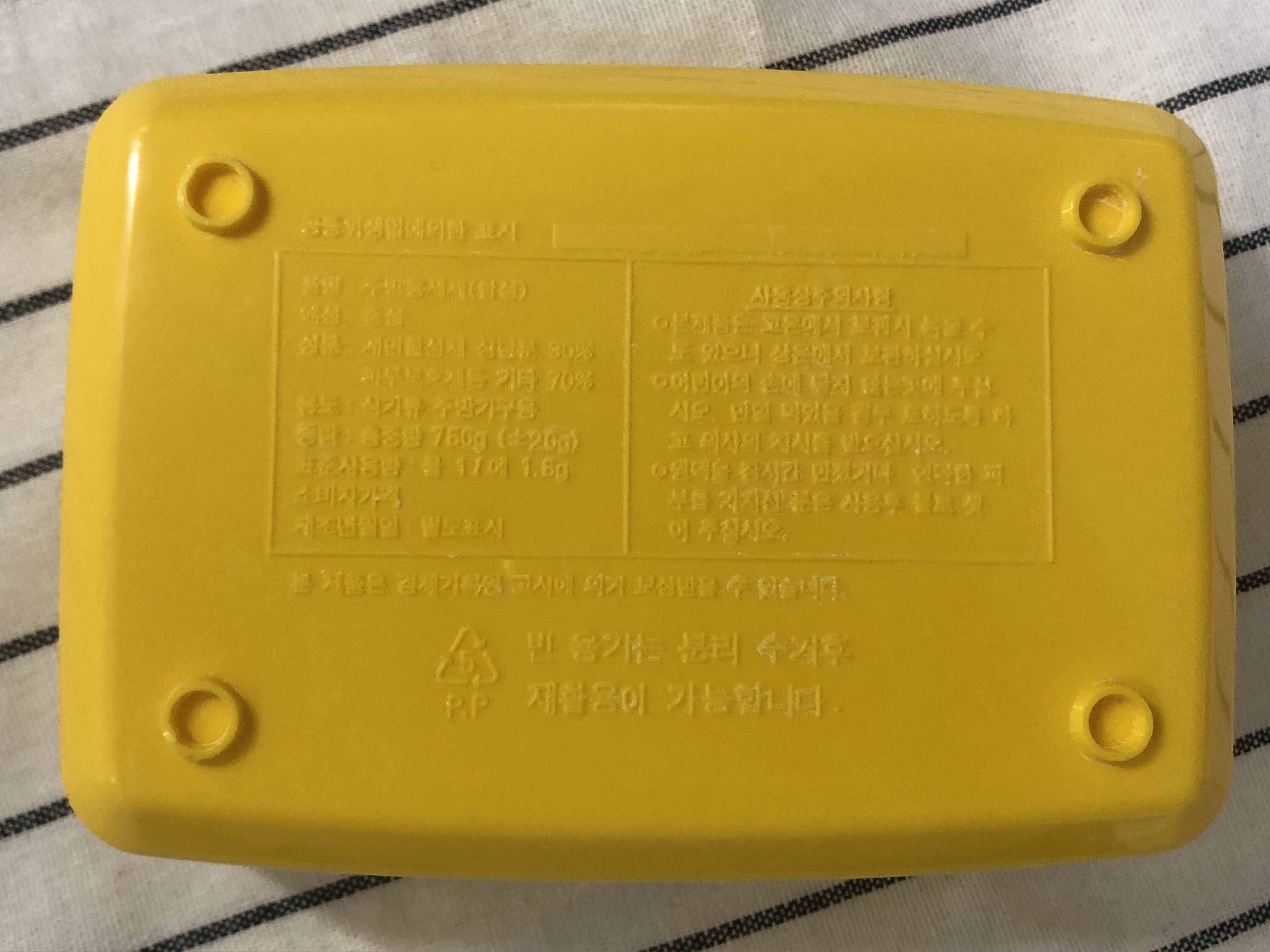 뒷면 제품 정보입니다. 플라스틱 통에 들어있는데요. 플라스틱 통은 재활용이 가능하다고 해요.