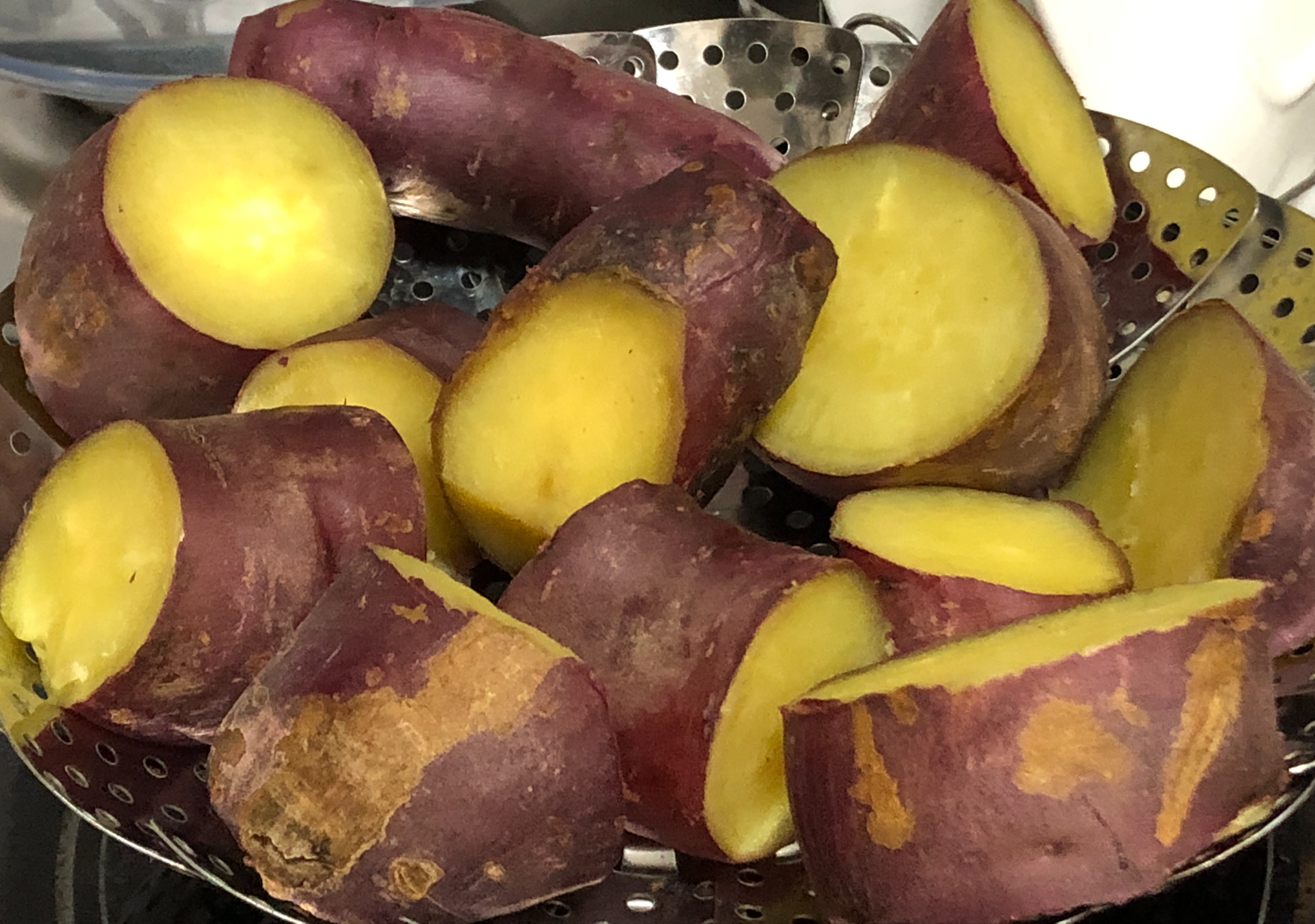 1. 고구마를 찜기를 사용하여 삶아줍니다.