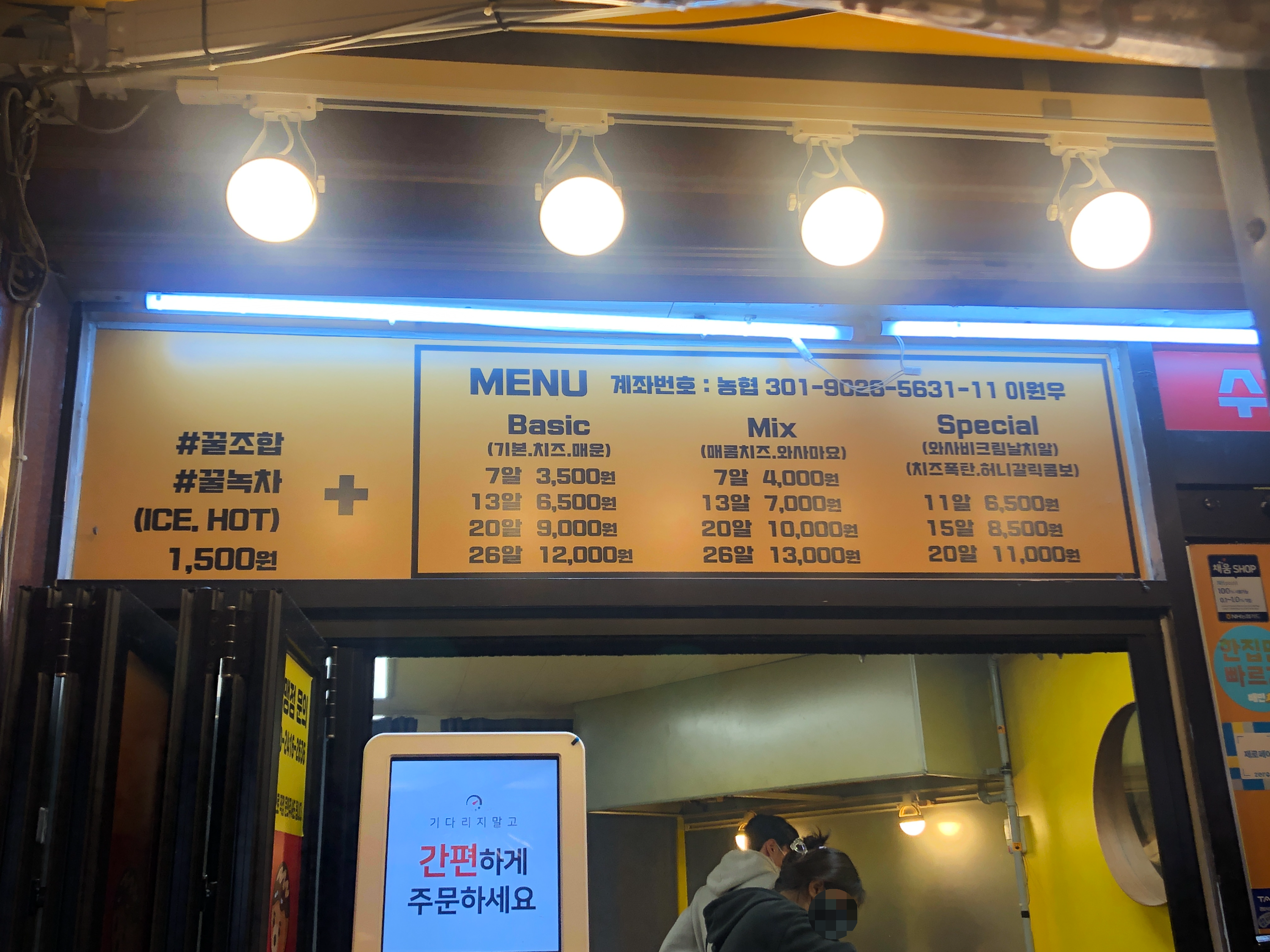 저희는 식사를 하고 온 상태여서 7알만 시켰습니다. 처음이니까 베이직으로 먹어보기로 했어요. 반반메뉴도 있었구요. 맛잘알 지인이 타코야끼 먹을 때 매운맛을 꼭 먹어야 한대서 궁금해서 시켜봤습니다.