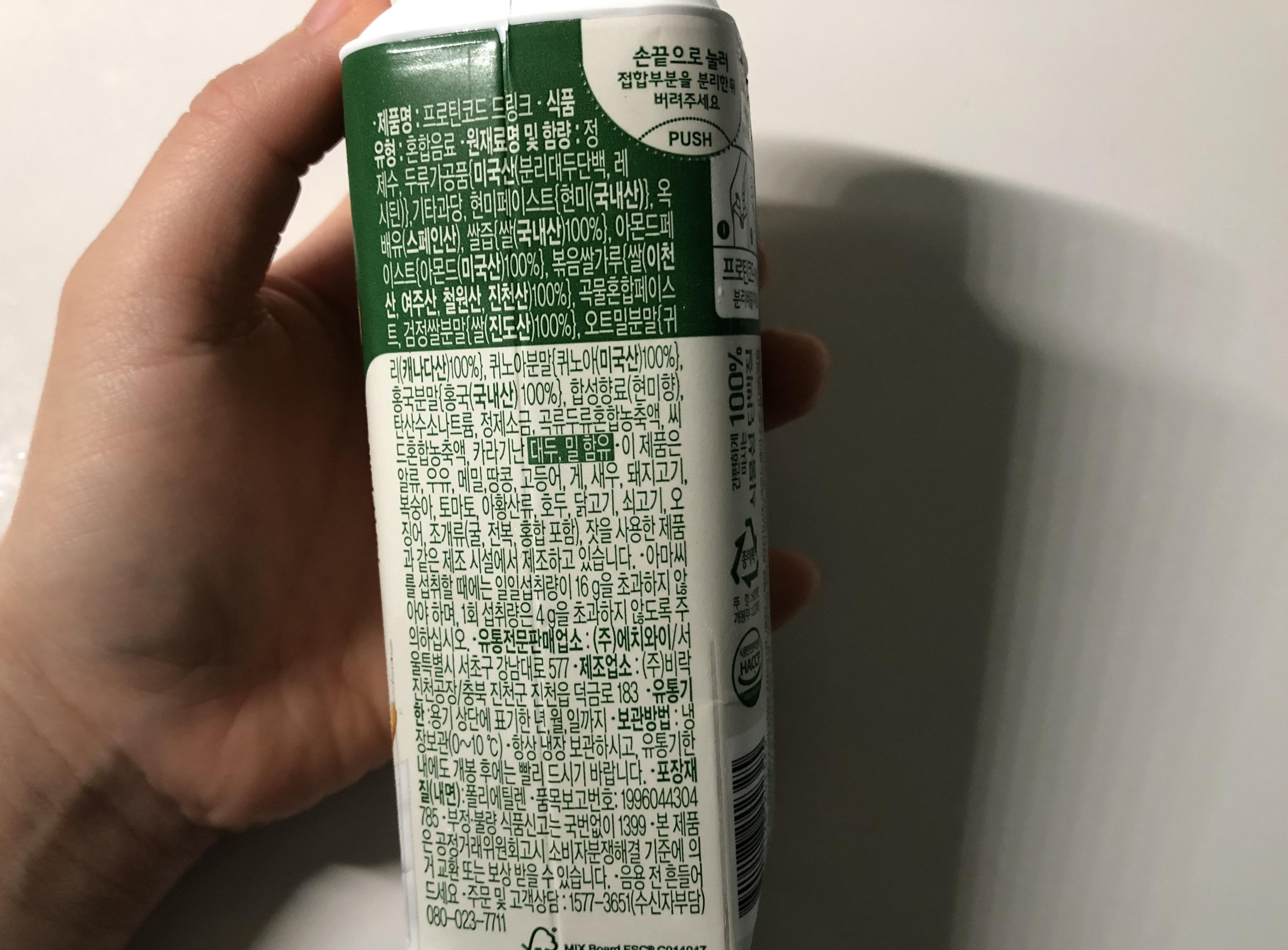 프로틴코드 드링크 뒷면 원재료명 확인하세요~