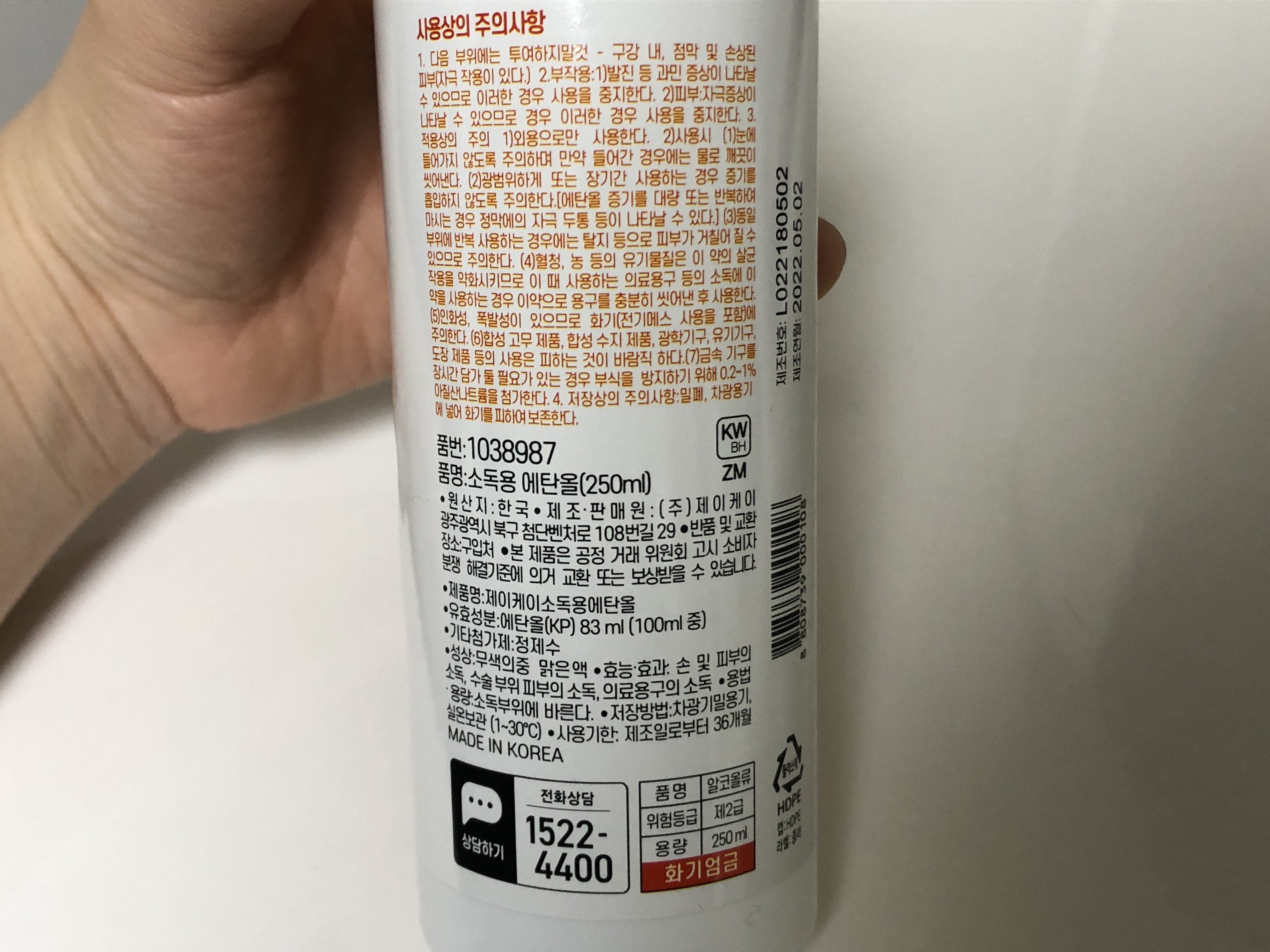 저희 동네 약국 기준 1,500원에 에탄올을 판매하고 있더라고요.