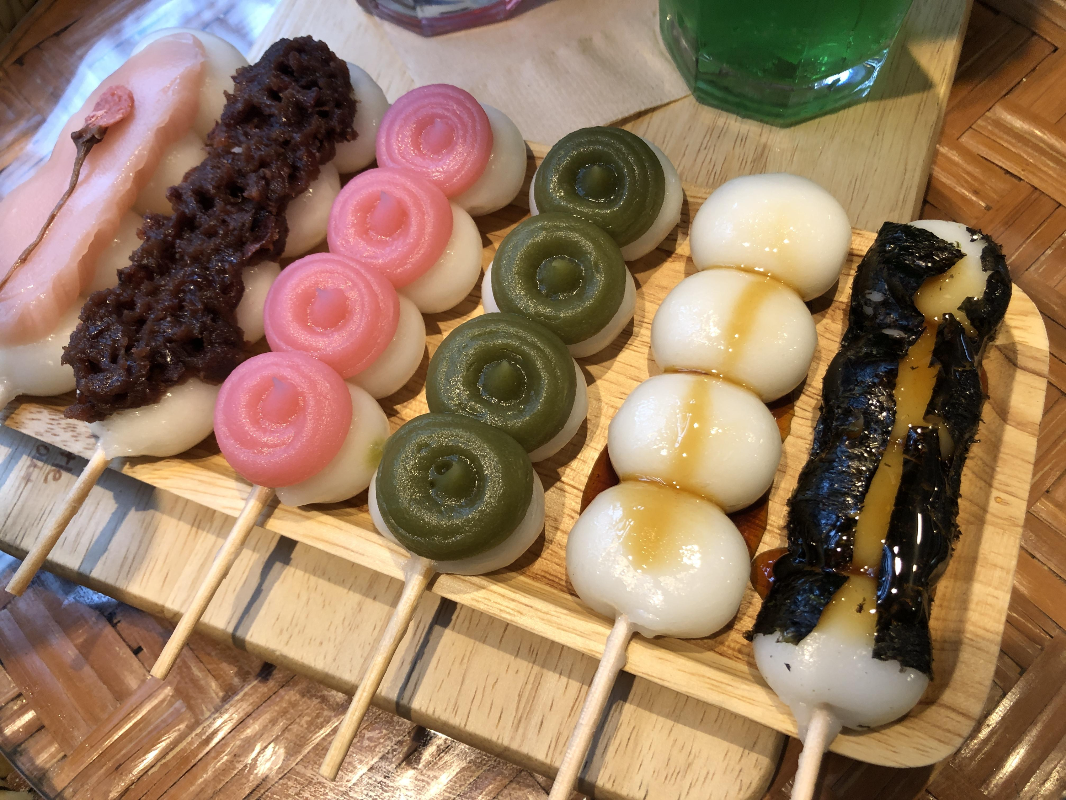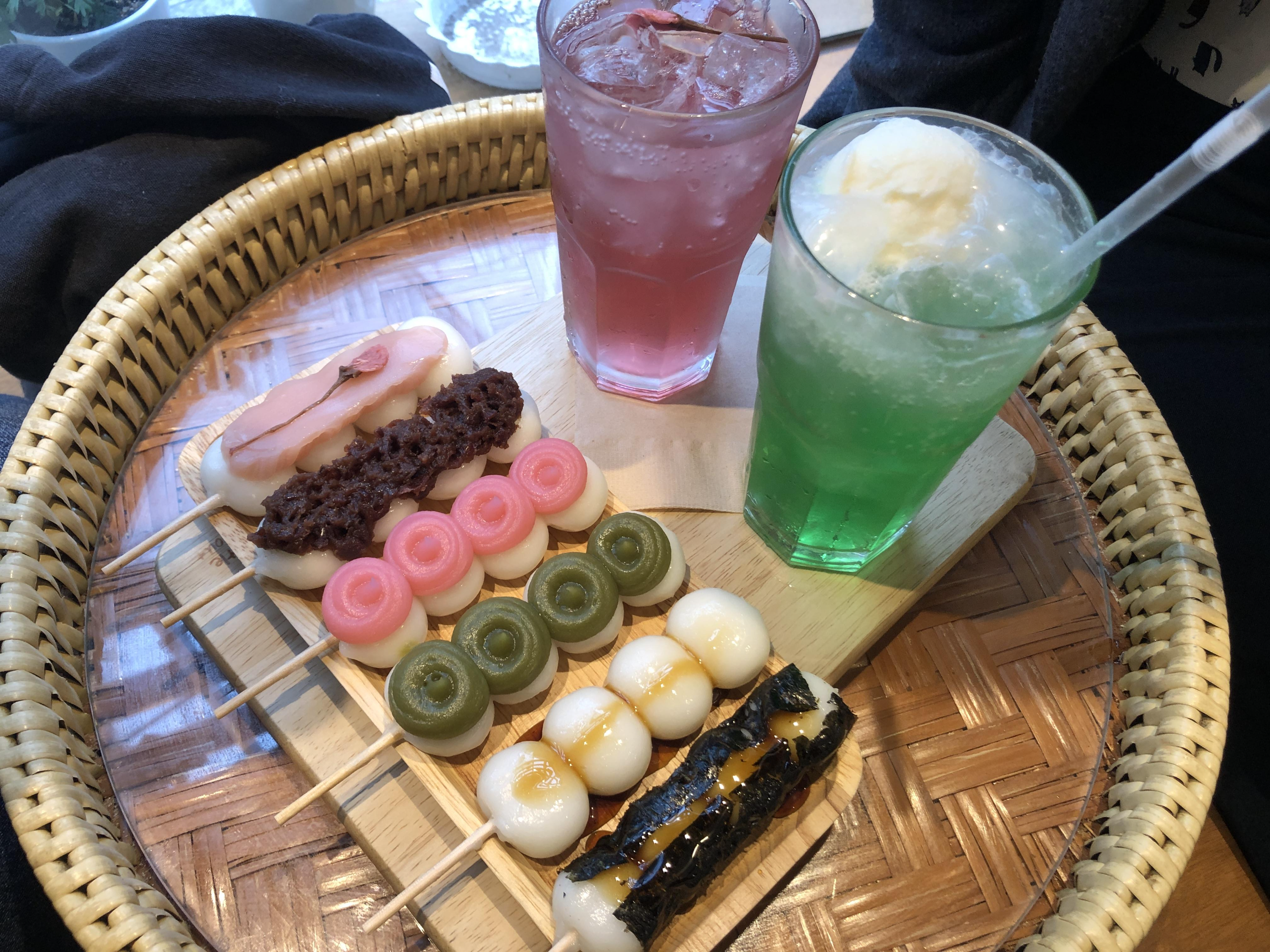 당고는 4가지맛 당고세트와 친구들이 각자 시킨 벚꽃 당고와 노리 당고가 깔끔하게 나왔어요.