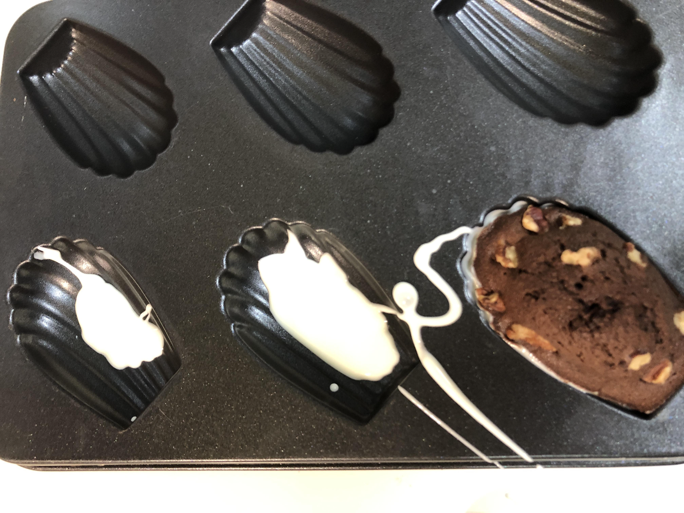깊은 마들렌팬인데 틀에 넣는 화이트초콜릿 양은 가운데 틀에 넣은 양이 딱 좋아요.