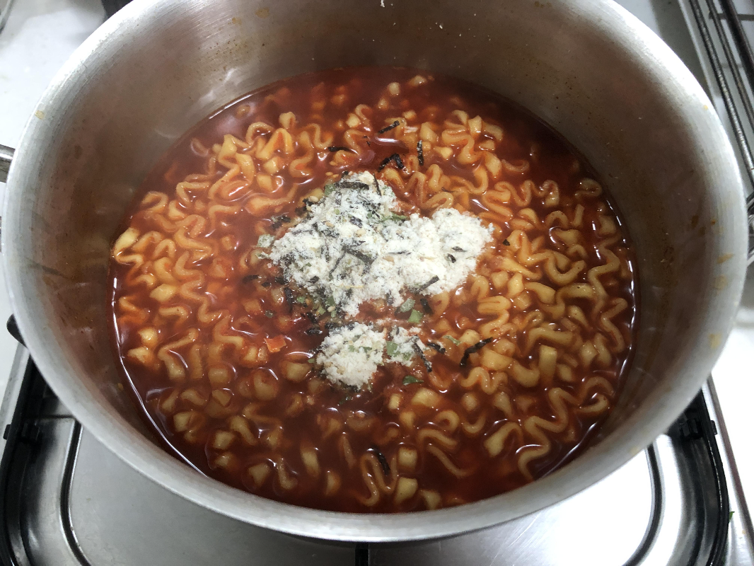 앗 이제 보니 소스를 넣고 끓이는 건데 저는 물이 끓고 소스를 넣었네요ㅋ 조리예 대로 하려고 했는데 이것 참...