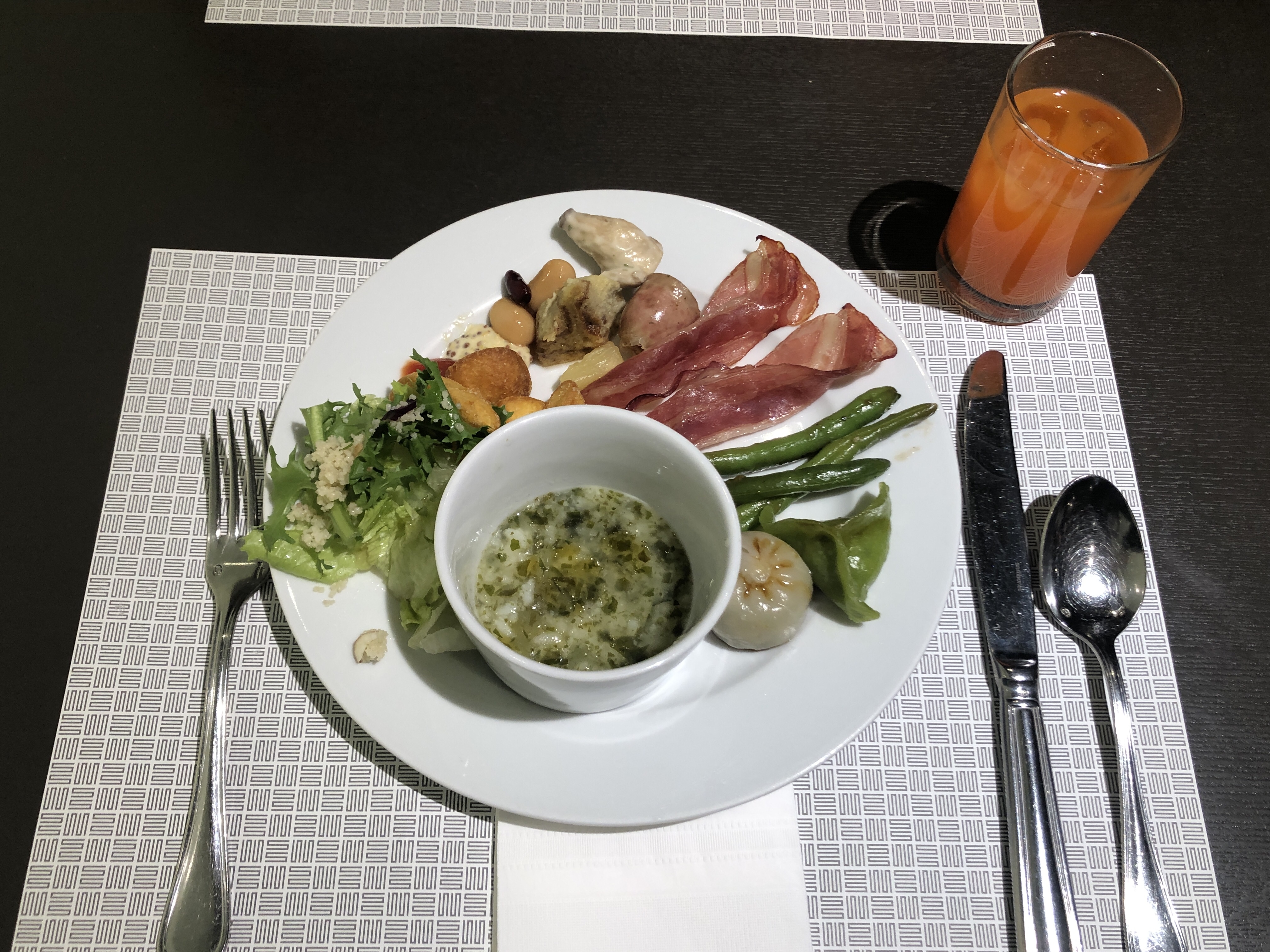 첫번째 접시! 초록색 딤섬이 맛있었어요. 그리고 당근주스랑 그린빈 맛있게 먹었습니다.