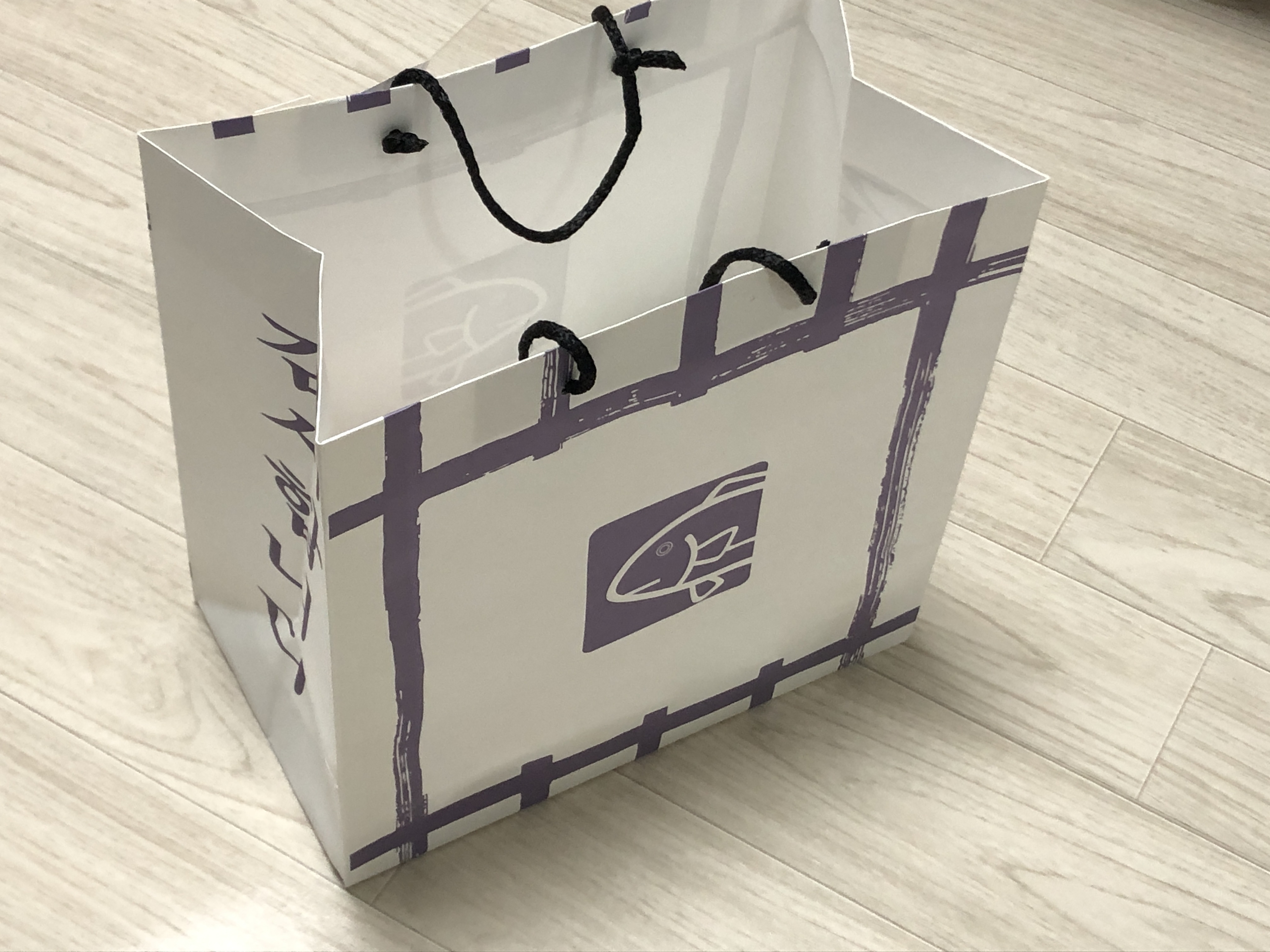 누가 봐도 횟집에서 뭐 포장했네 싶은 종이 쇼핑백에 초밥을 담아주십니다. 물고기머리랑 옆에 감사합니다 적힌 게 너무 귀엽고 웃겨요...