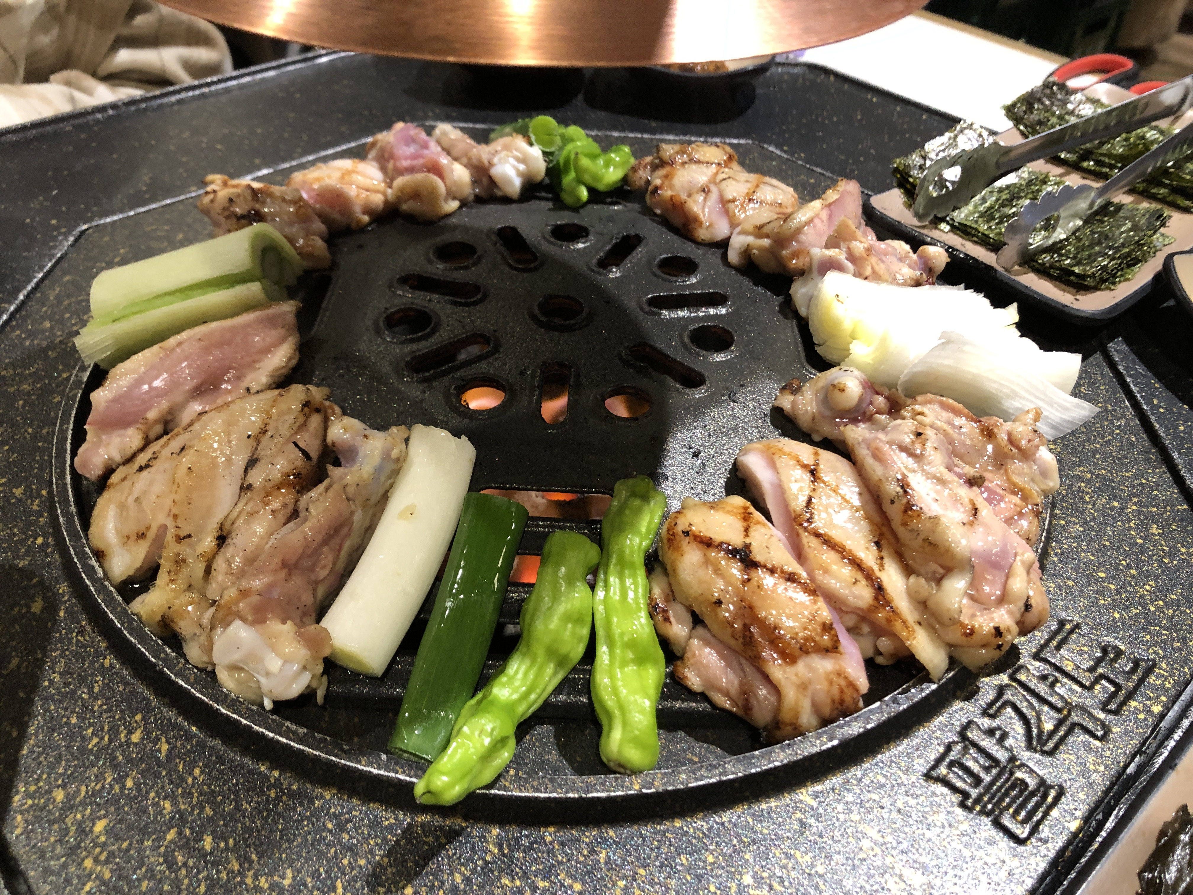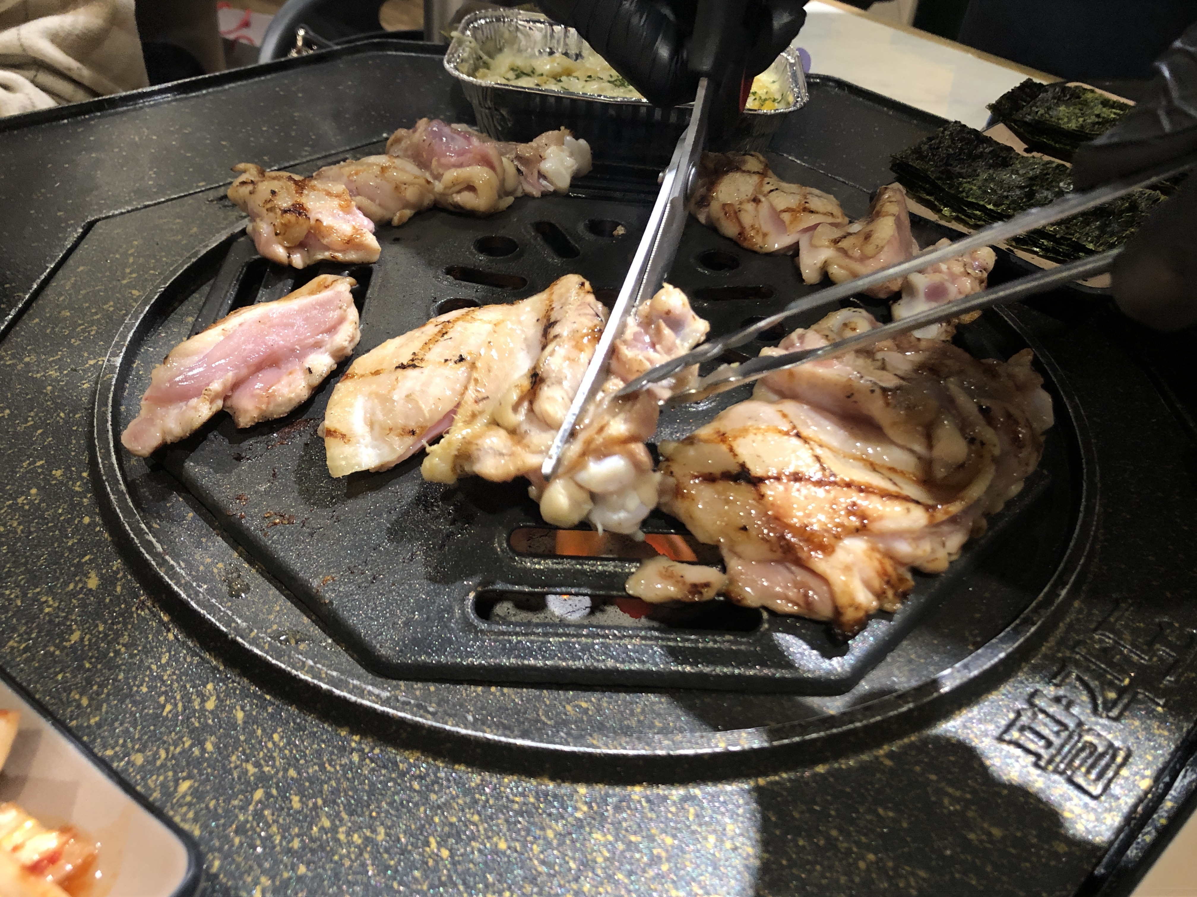 직원분이 처음엔 닭을 구워주셨지만 나중엔 저희가 구워먹었습니다. 저는 고기를 잘 못 구워서 집게 바통터치한 게 조금 아쉬웠습니다^ㅠ^