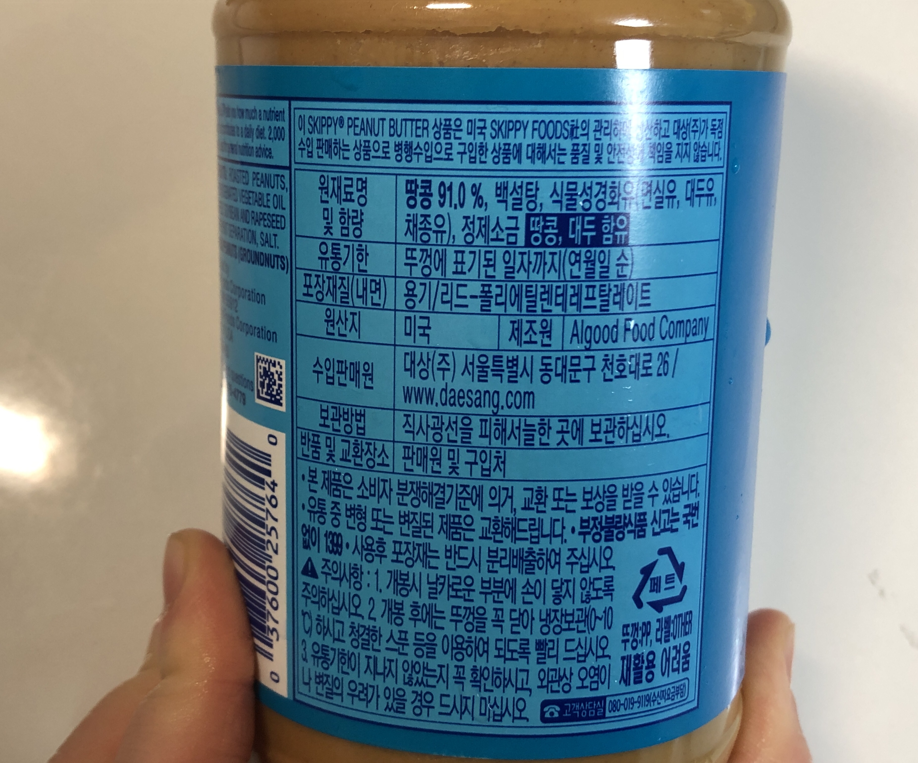 내용량은 462g에 땅콩이 무려 91%가 들어가 있다고 합니다. 대부분 땅콩이라는 소리겠죠?