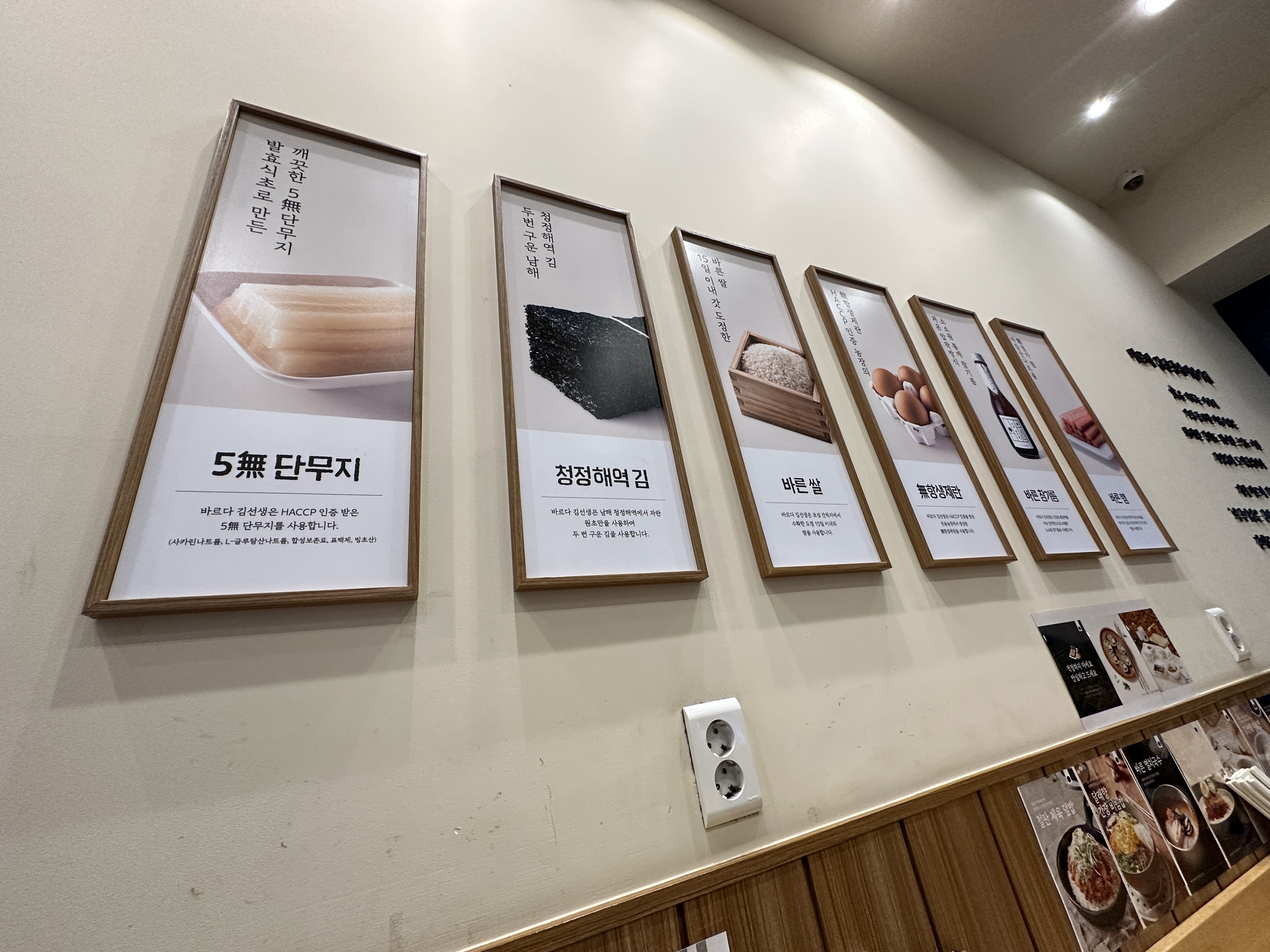 하지만 메뉴판의 사진과는 좀 다르게 가산디지털단지 바르다 김선생 바른 김밥에는 오이보다 당근이 좀 더 많이 들어간거 같습니다.. 당근맛이 아주 강하게 났어요. 당근을 싫어하시는 분은 호불호가 갈릴수도 있는 맛이겠어요. 이날만 당근이 많이 들어간건지는 모르지만 저는 딱 가볍게 한끼 해결해서 좋았습니다. 다음엔 키토김밥을 한번 먹어봐야 겠어요. 요즘 김밥 한줄은 가게에서 먹으면 식사도 못한다는 얘길 들어서 놀랐는데 가디 바르다 김선생은 그런 상황은 일어나지 않았어요. 혼밥하기 최적의 장소였습니다. 이상 가산 디지털단지역 맛집 바르다 김선생 바른김밥 후기었습니다.