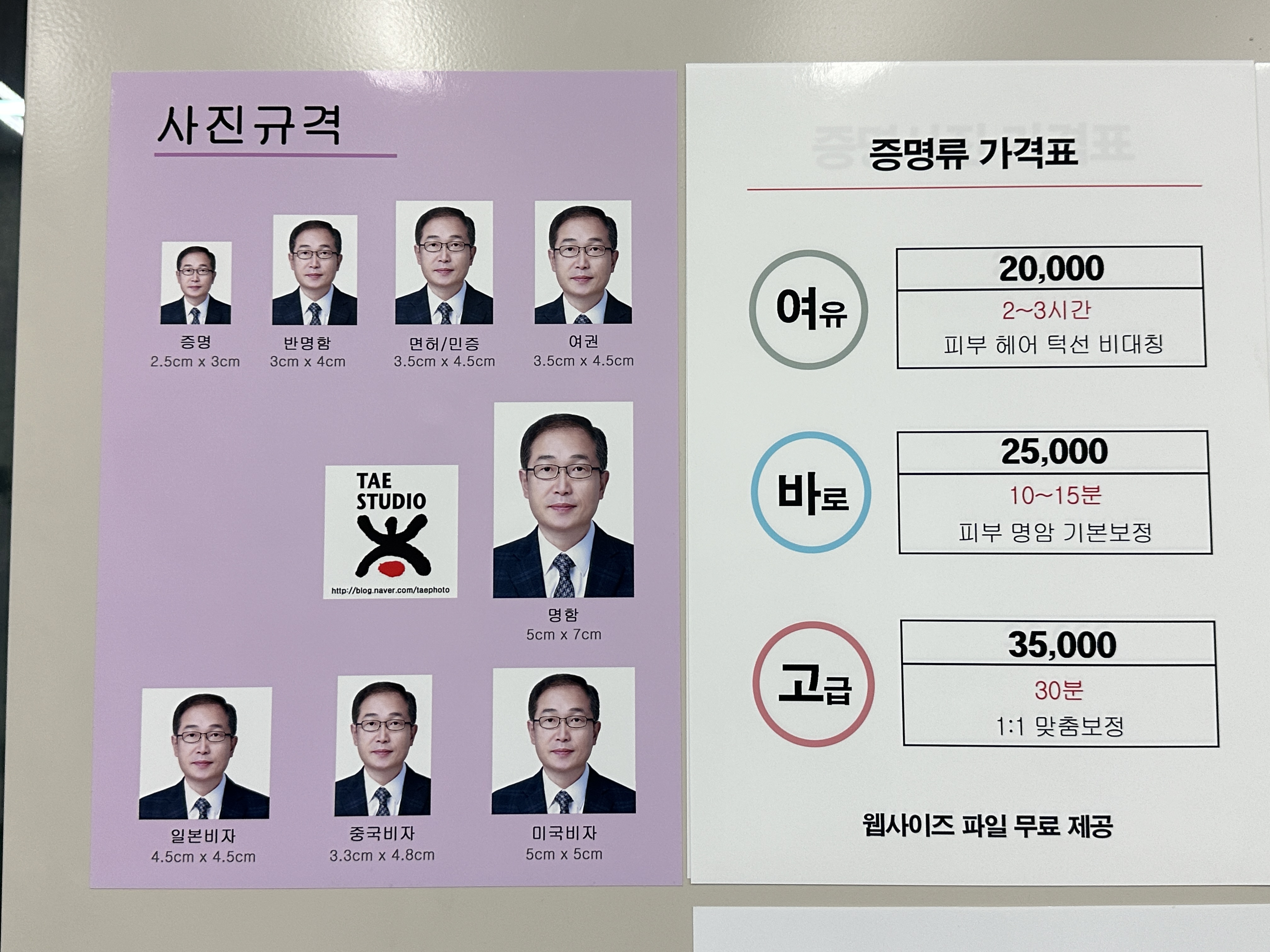 가산동 태스튜디오 증명사진 가격 및 여권사진 가격