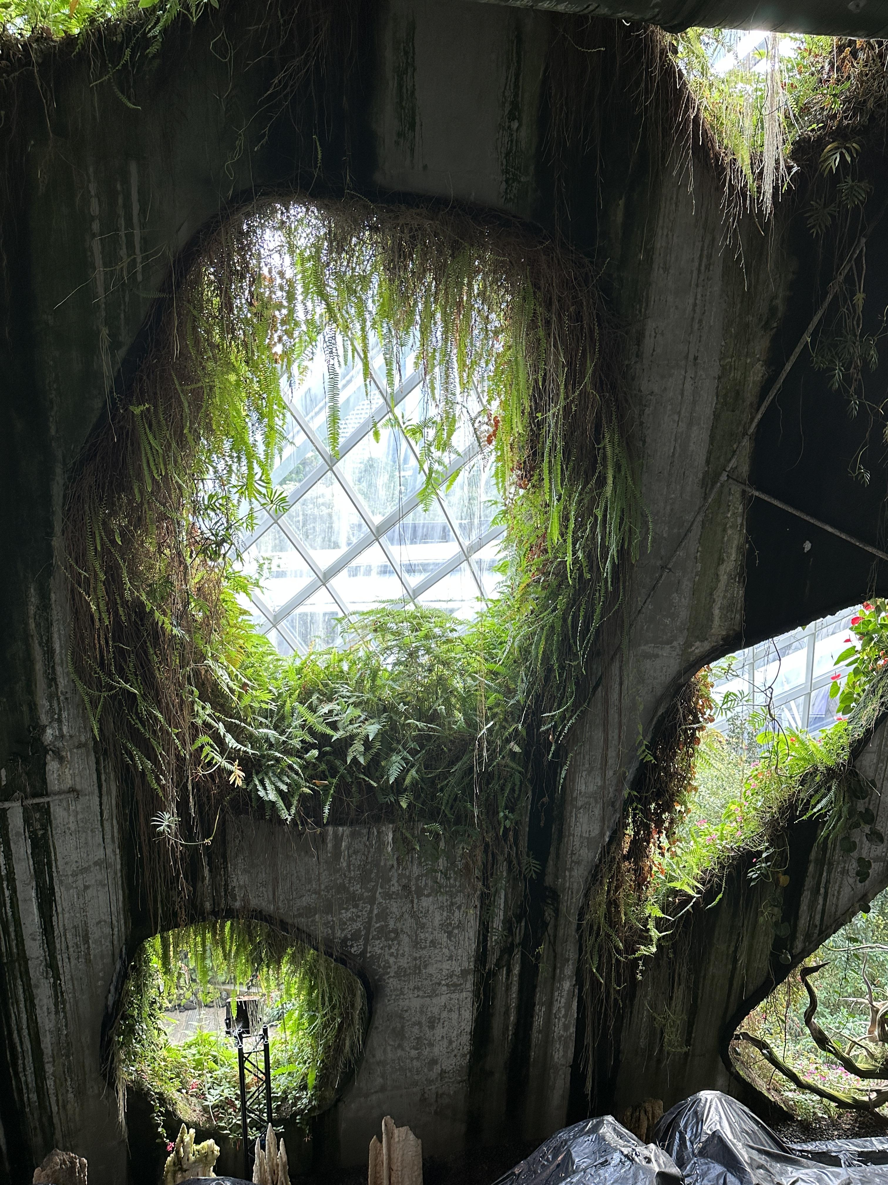 인공폭포 제일 꼭대기에서 내려오는데 벽쪽에 이런 식으로 구멍이 뚫려있었다. 식물과 조화로운 모양이라 좋았음.