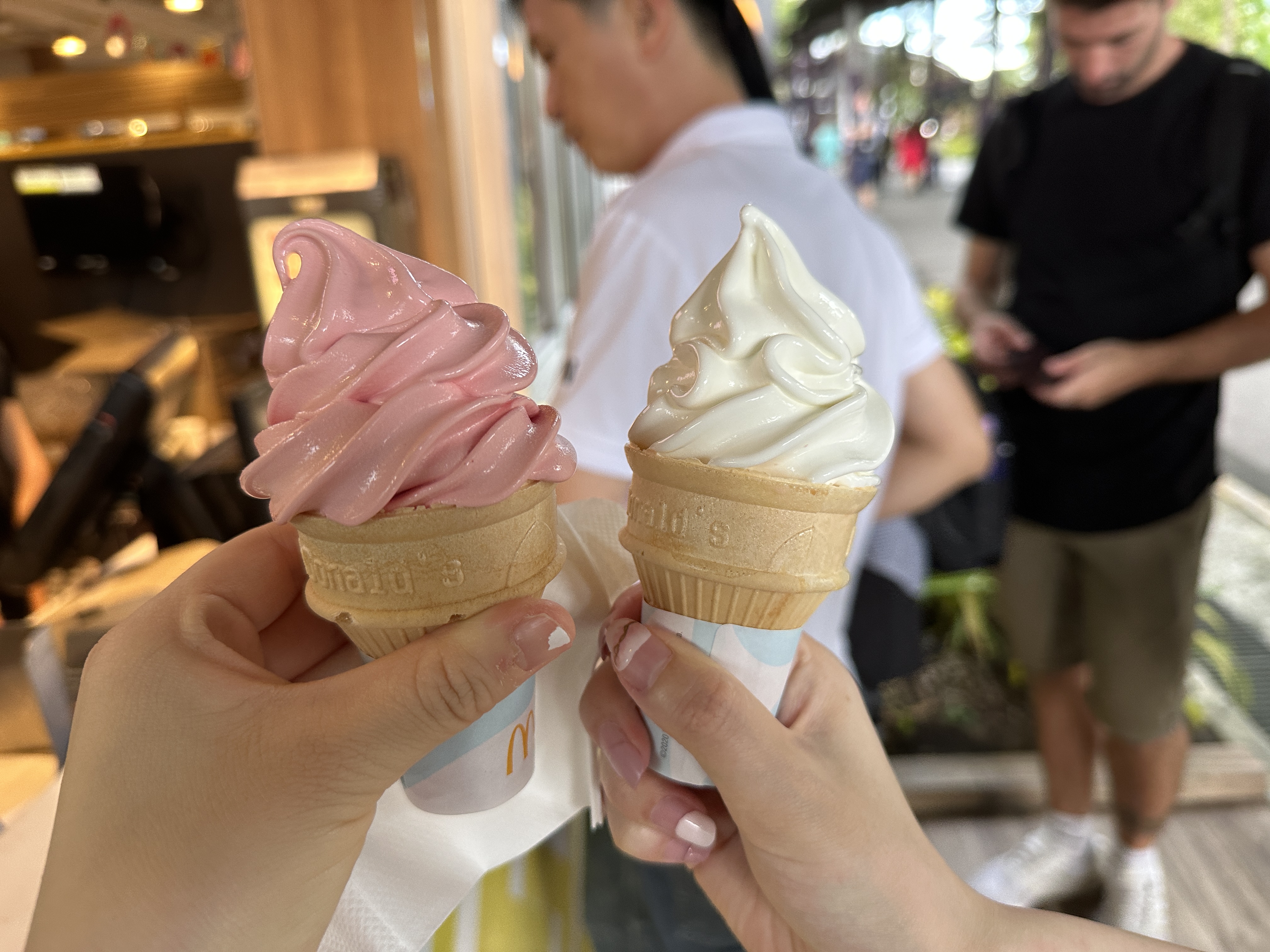 가든스 바이 더 베이 앞에 맥도날드랑 스타벅스가 있었다. 고민하다가 맥도날드 소프트콘 수박맛을 팔고 있길래 먹고 싶다고 해서 사먹었음. 그런데 이건 절대로 비추... 그리고 싱가폴은 밖에서 아이스크림 먹으면 안되나요. 사 오자마자 더운 날씨에 아이스크림이 미친 듯이 녹음. 그냥 아이스크림이 손을 타고 내려옴 ㅠㅠ 그리고 저 수박맛 소프트콘이 핑크색으로 사람 홀리는데 진짜 맛없음. 맛 조합을 어떻게 한 건지 수박 따위 느껴지지 않았다. 난생처음 먹어보는 이상한 인위적인 맛이었음. 노맛이라 반 먹고 버림. 수박바 최고... 싱가폴에서 실패한 음식1