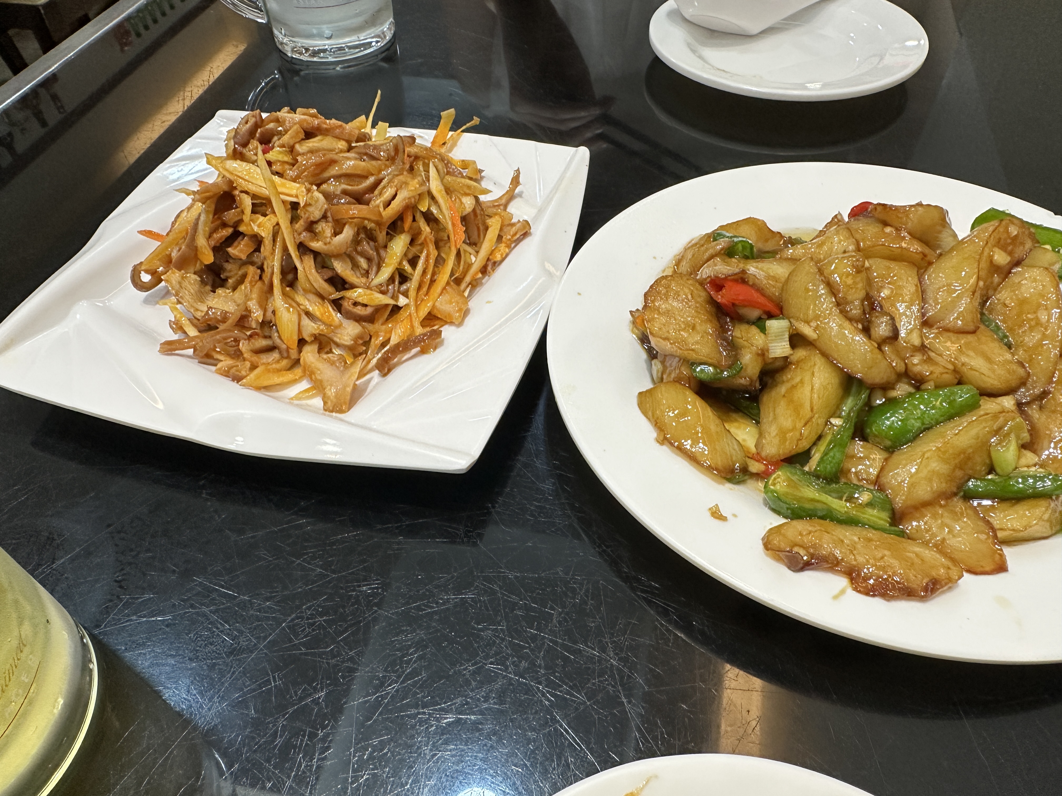 친구가 주문한 음식과 지삼선 같이 생긴 가지요리! 친구가 주문한 왼쪽 음식은 어딘가의 내장 무침이었다.(번역 돌려보니 곱창이라곤 나옴) 보기엔 음식이 따뜻해 보이는데 차가운 음식이었다. 저런 내장류가 들어간 음식들이 한국에선 다 무겁고 기름진 느낌인데 양념도 그렇고 가벼운 맛이라 매력 있었음. 내장 좋아하면 저 메뉴 추천함. 또 먹어보고 싶다. 가지 요리도 지삼선이랑 거의 흡사해서 친구도 맛있다고 했다. 가지 껍질을 벗겨서 처음엔 가지가 아닌줄 알았다. 사진은 없지만 꼬치들도 하나는 좀 질겼지만 맛있었다. 시킨 메뉴들 다 맛있었음 추천!