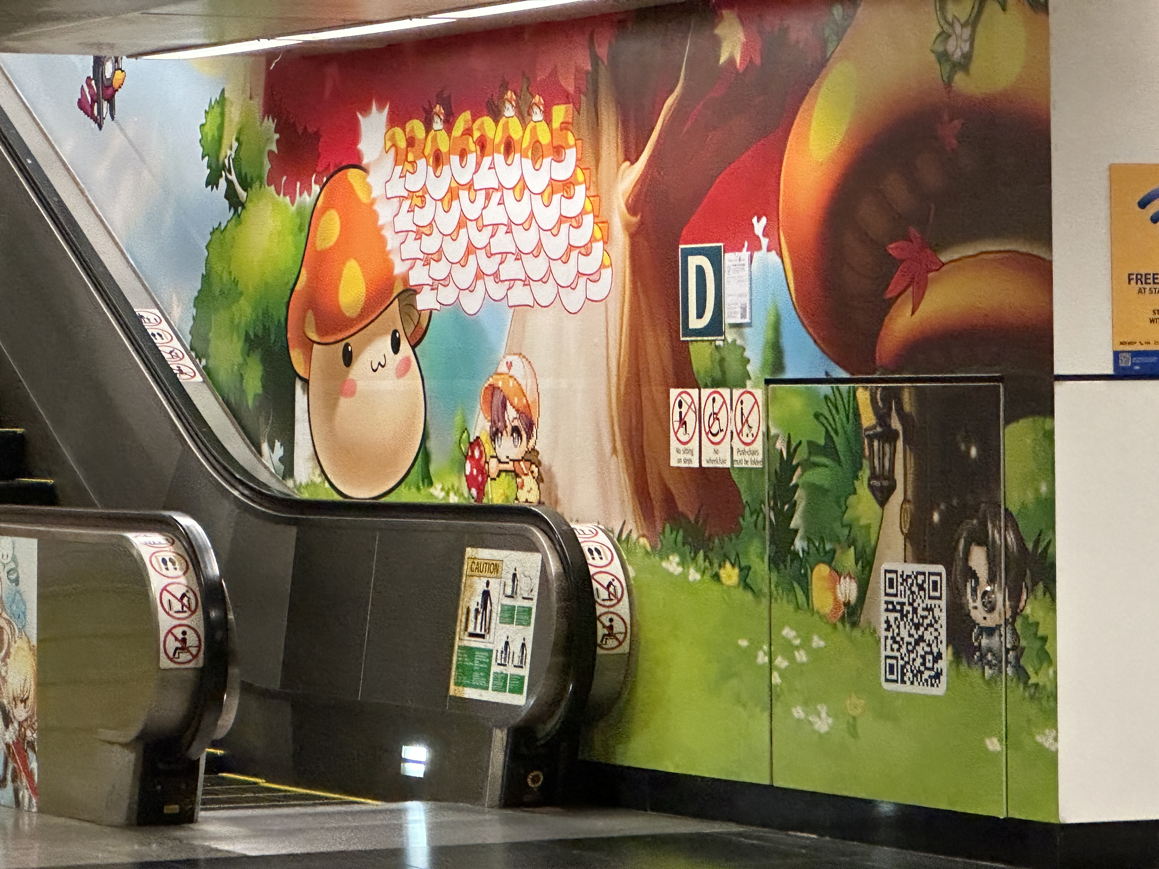 왜 찍었는지는 모를 싱가포르 지하철 풍경. 한때 메이플 유저라 메이플 캐릭터 반가워서 찍었다. 그나저나 싱가포르 지하철의 에스컬레이터 속도가 진짜 빠름. 처음에 발 올리고 몸이 뒤로 빌릴 정도의 스피드여서 놀랐지만 한국에서 8282좋아하는 사람들에겐 딱 좋은 속도라고 생각함. 친구도 처음엔 적응 안 됐는데 적응되면 느린 게 답답하다고 얘기해 줬다.