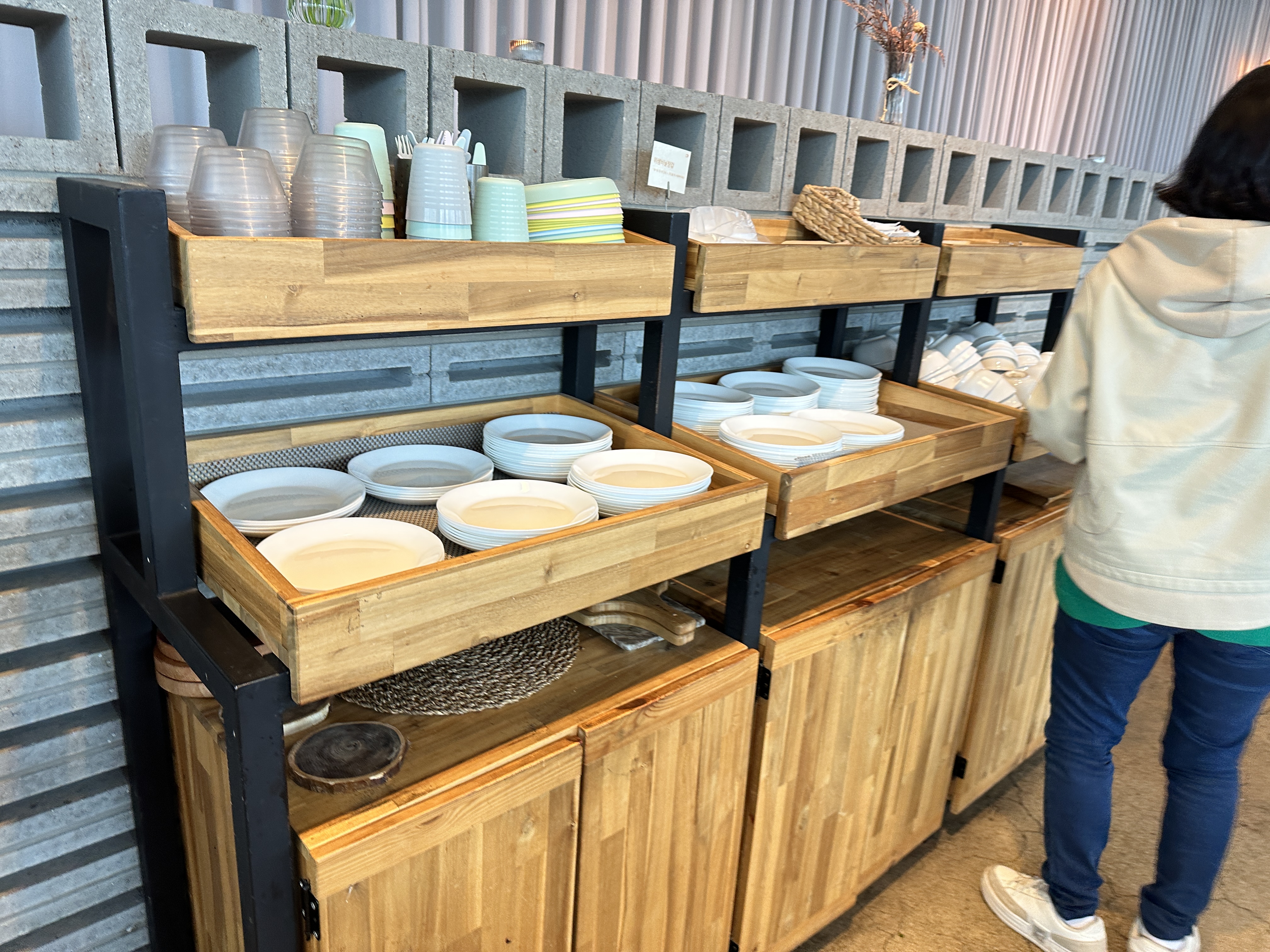 내부는 꽤 넓었고요. 우측에 있는 접시를 사용해서 음식을 담아서 먹으면 됩니다.