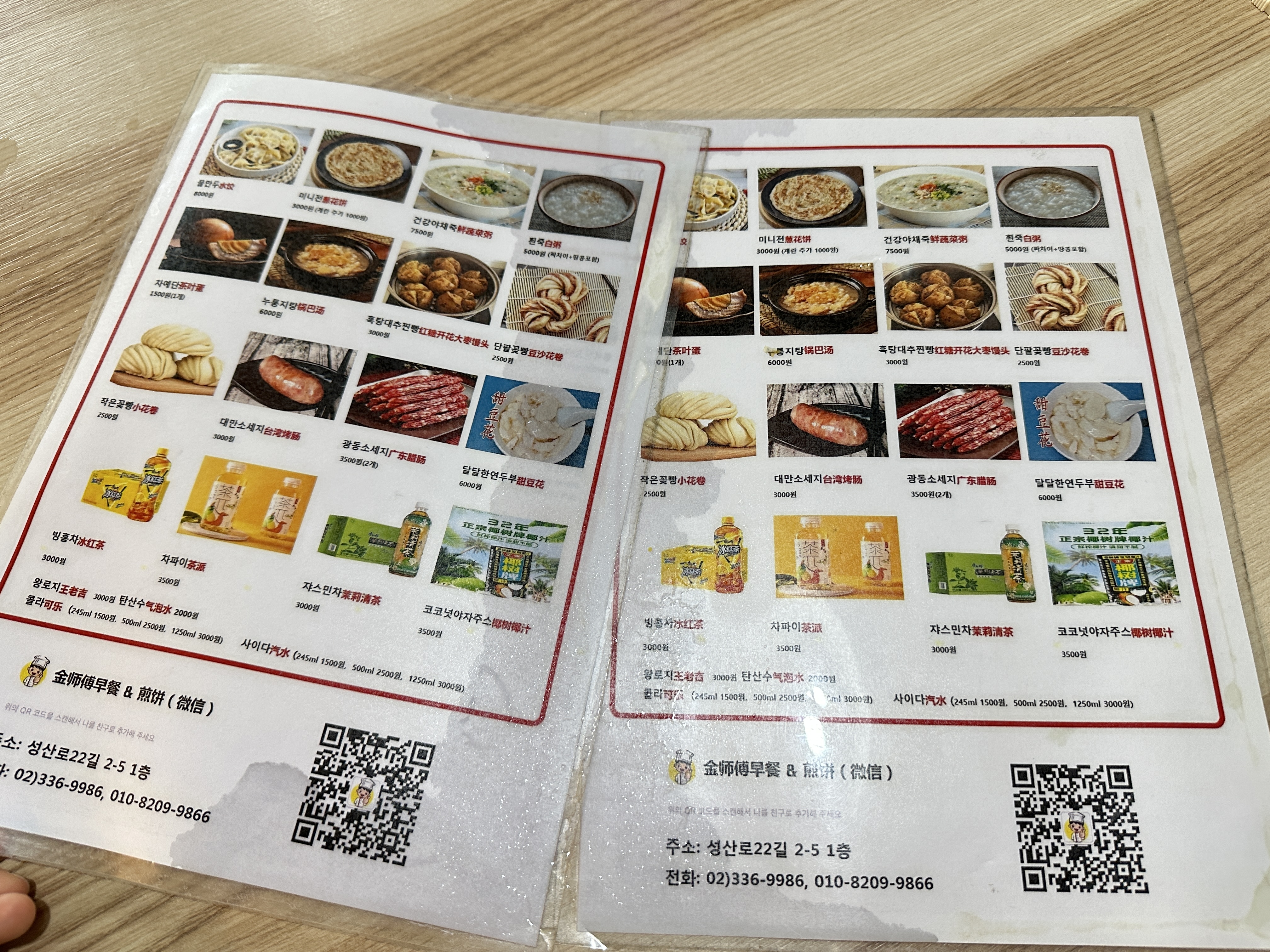 신기한게 꽈배기 빵이 가운데 들어있고요. 양상추와 계란 소시지가 들어있었어요. 소시지도 중국 소시지가 아닐까 추측해 봅니다. 메뉴에도 지엔빙에 들어가는 재료가 소개되어 있어요. 맛은 쫀득한 전병식감에 안에 들어있는 재료들이 잘 어울려서 맛있었고요. 신기한건 중국음식 맞나 싶을 정도로 소스가 자극적이지 않아서 않아서 딱 아침밥으로 좋을 거 같았어요. 전병으로 만든 크레페나 토스트 느낌의 음식이었습니다. 저는 맛있게 먹었어요. 가게만 가까우면 다른 음식들도 하나씩 뿌셔보고 싶은데 아쉽습니다.
