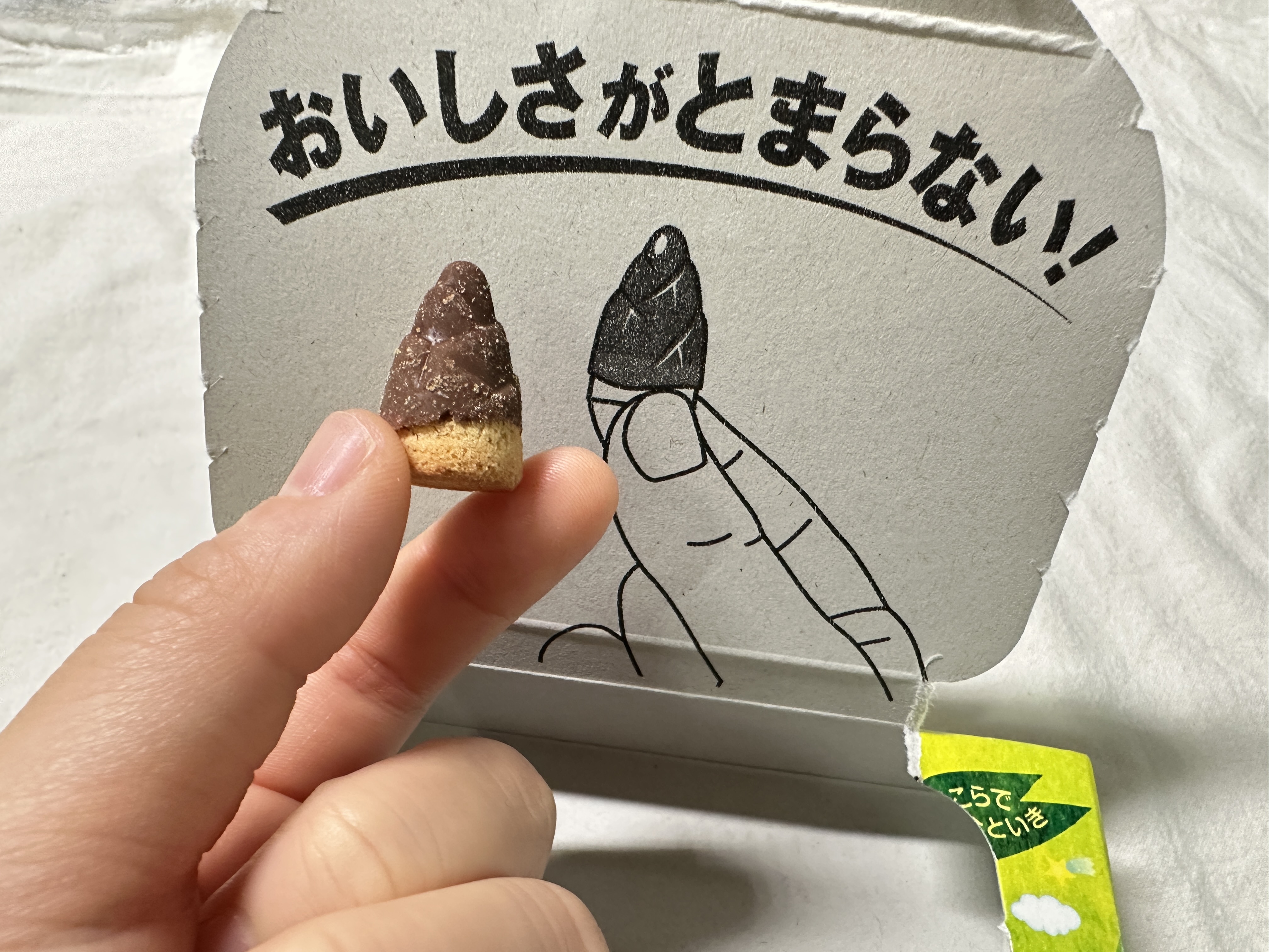 이번 오사카 여행에서 사온 타케노코노리라는 과자를 먹어봤어요. 일본어도 잘 모르고 처음엔 젤린가 하고 돈키호테에서 집어왔는데 열어보니 초코송이 느낌의 초콜릿과자였습니다. 죽순을 닮은 거 같아요. 포장지에 대나무도 많네요. 찾아보니 타케노코가 죽순이었네요.