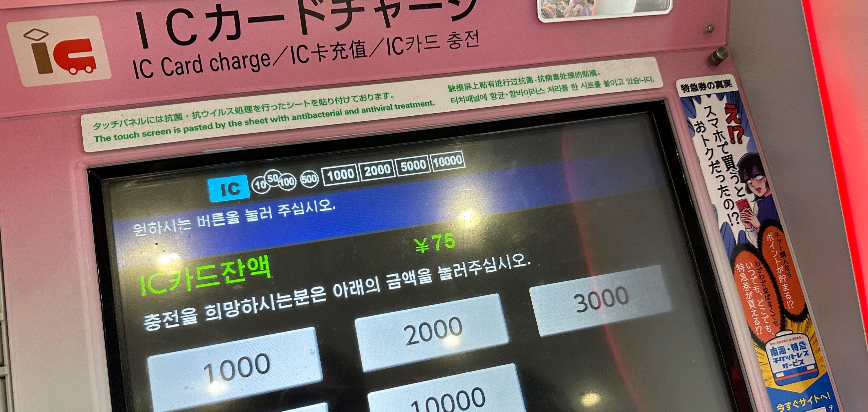 입국 수속도 시간이 좀 걸린 걸로 기억함. 지문 찍고 사진 찍고… 간사이 공항 도착해서 atm에서 출금부터 함. 트래블월렛은 이온 atm에서 출금 수수료가 무료라고 한다. 간사이공항 이온 atm위치는 터미널 내려서 2층 tasty street 앞에 있는 이온 atm에서 출금했다. 갓블로거들 포스팅 도움대로 도움대로 무사히 출금함. 비밀번호가 6 자리 었는데 비번 4자리 뒤에 00 붙이면 됐다.