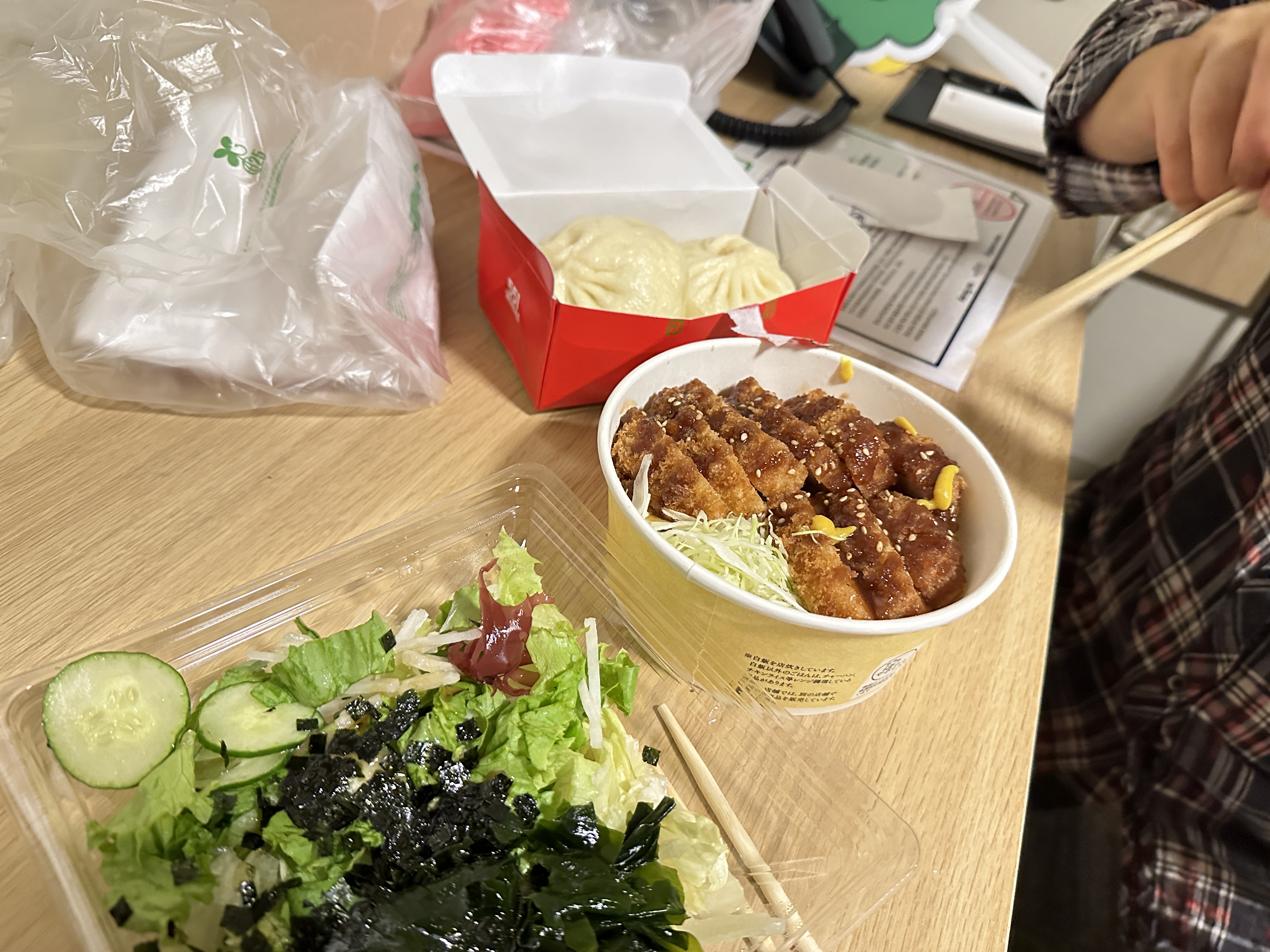 그리고 숙소 들어와서 사 온 것들이랑 샐러드 먹어야 할거 같아서 숙소 1층의 로손편의점에서 샐러드 사 왔다. 저 미역 들어있는 샐러드가 진짜 괜찮았음! 오리엔탈? 간장소스 같은 거에 참기름 드레싱 들어있었음. 미역이랑도 잘 어울리고 맛있어서 한번 더 사먹음. 그리고 엄마가 돈까스 먹고 싶대서 편의점에서 파는 돈까스 덮밥 같은거 사왔는데 맛있어서 충격이었음;; 일본 편의점 도시락 퀄리티 무엇..