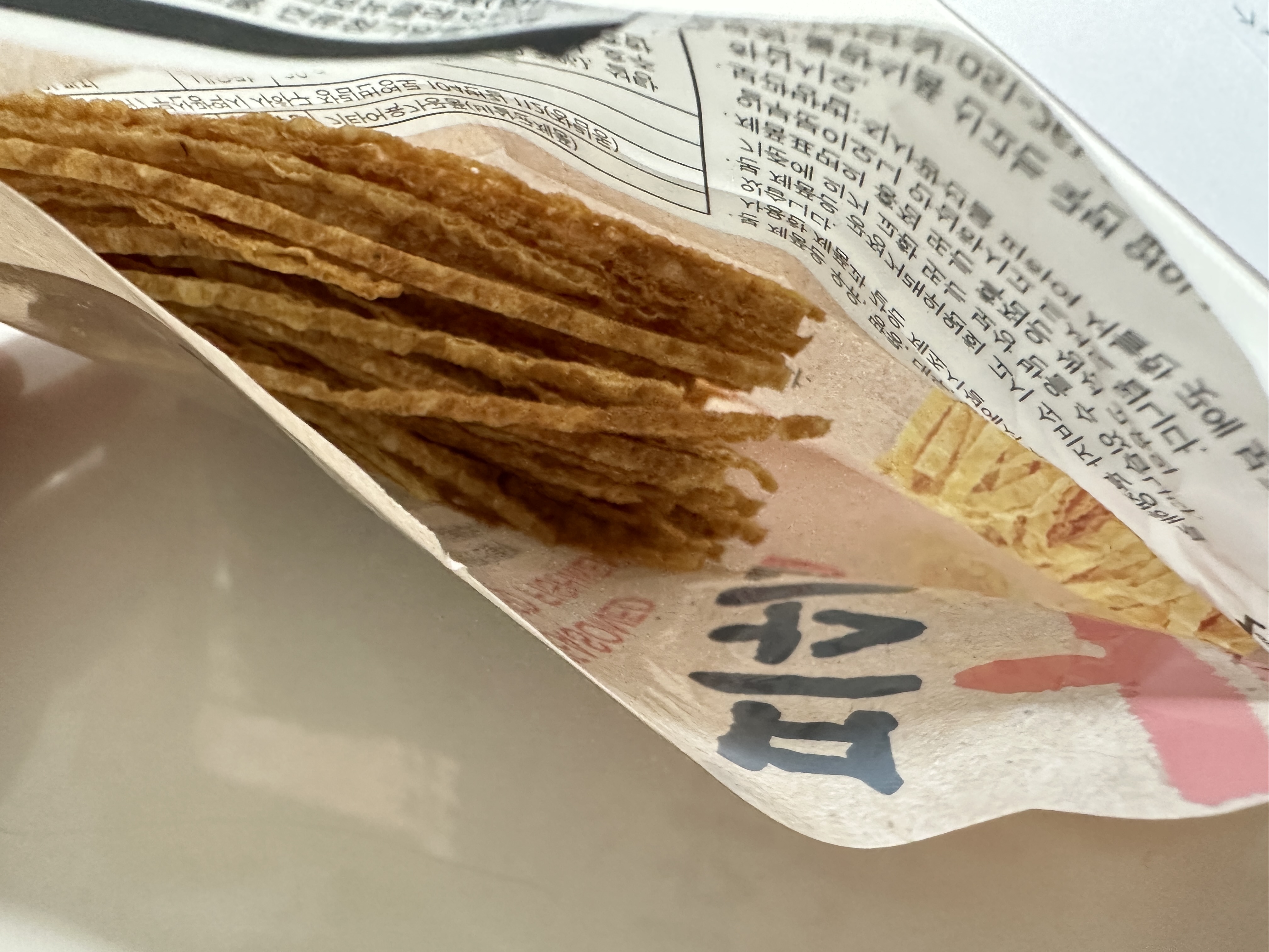 한올 들어보면 정말 가느다래요. 아쉬운게 너무 작아서 씹는맛이 좀 아쉬워요. 여러개 집어서 먹어야 먹는 느낌이 날듯.. 그래도 다이어트 간식으로는 딱 좋을거 같아요. 배송비 맞추기도 쿠팡 꿀템으로 추천드립니다.