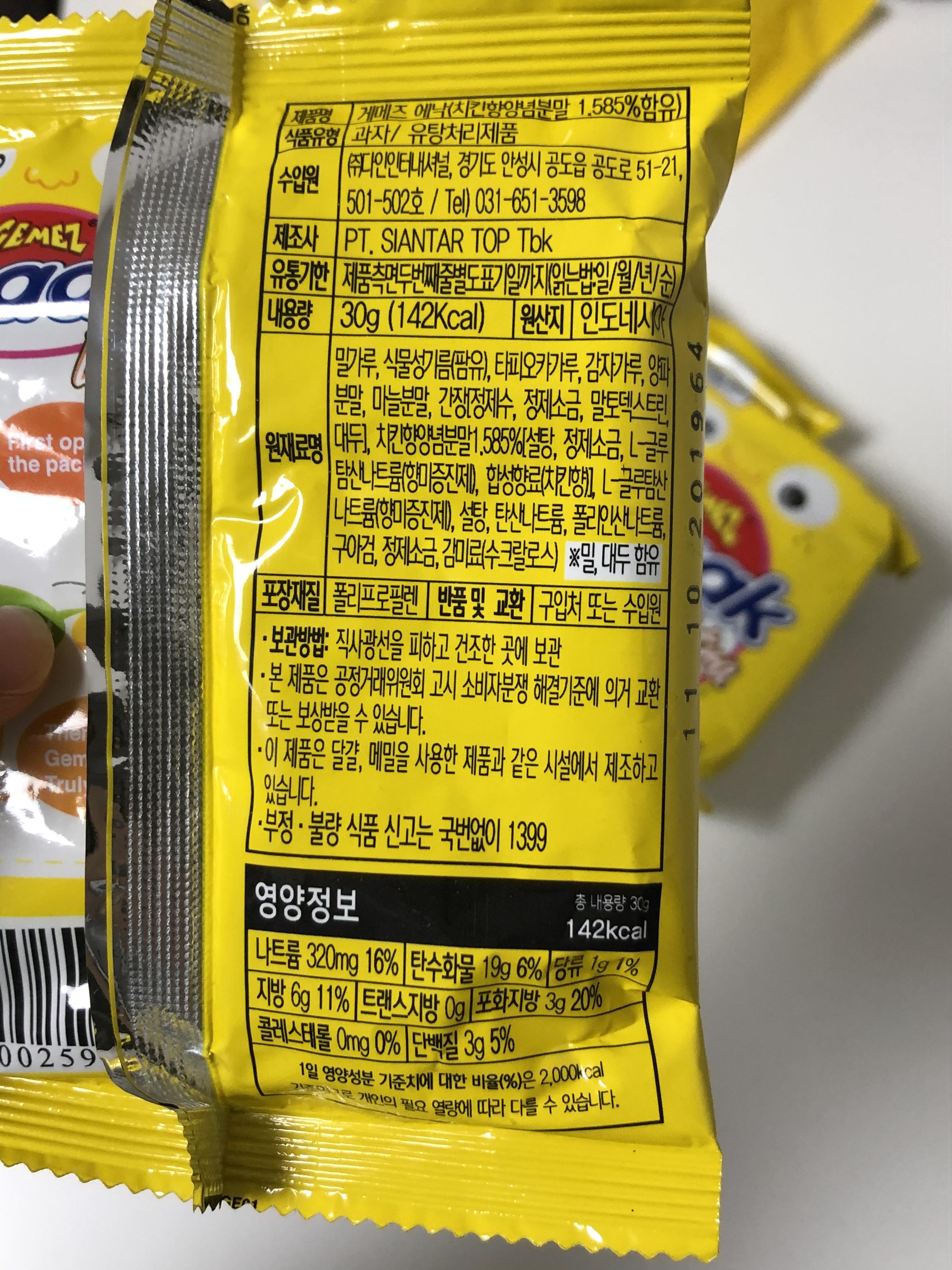 게메즈 에낙 영양정보! 이제 보니 당이 1%였구나.. 정말 단맛이 하나도 없었음. 어른 과자 아냐?ㅜㅠ
