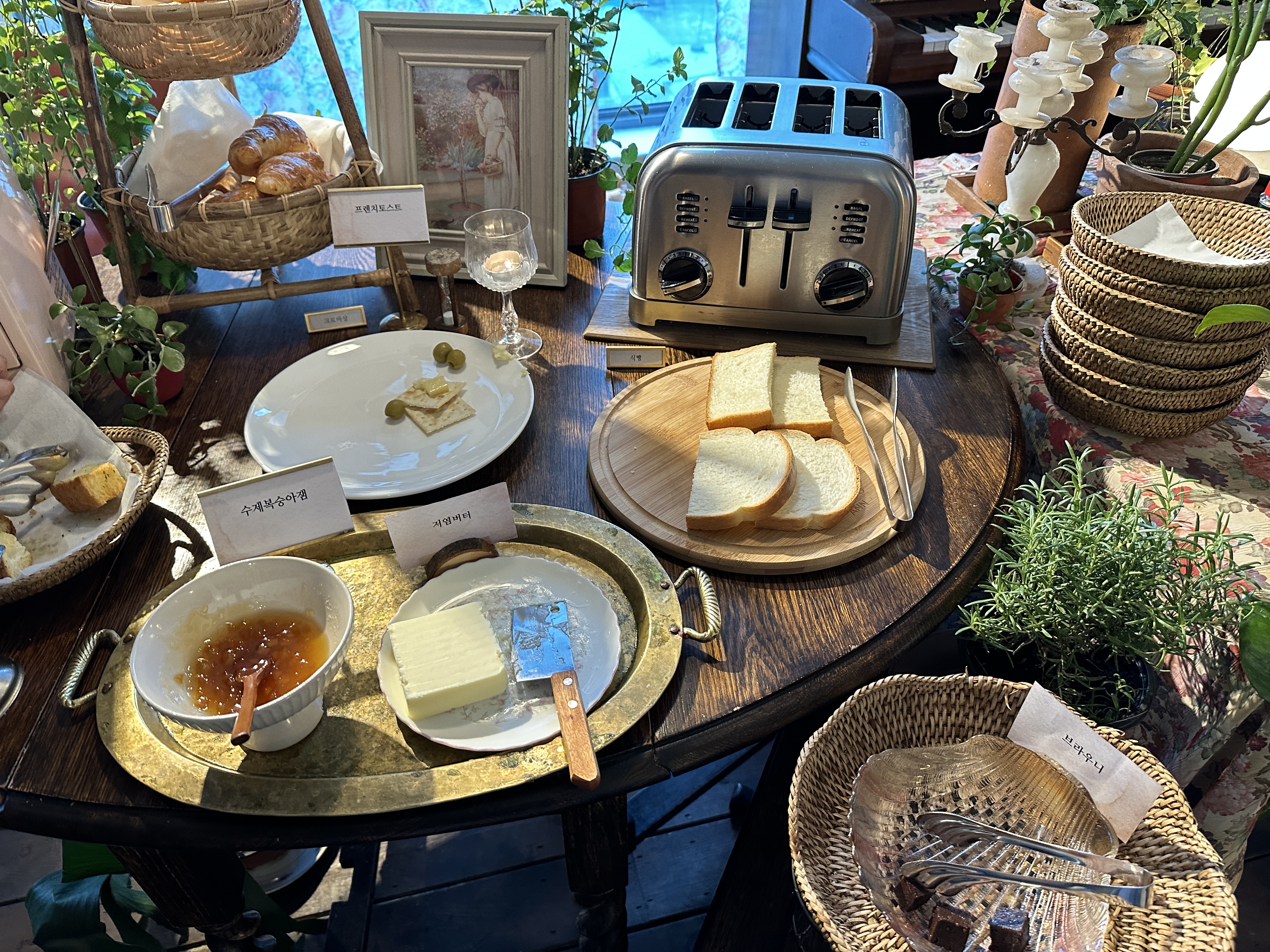 빵 종류도 다양했고 발라먹을 재료도 많았고요. 후식으로 먹기에 좋았습니다.