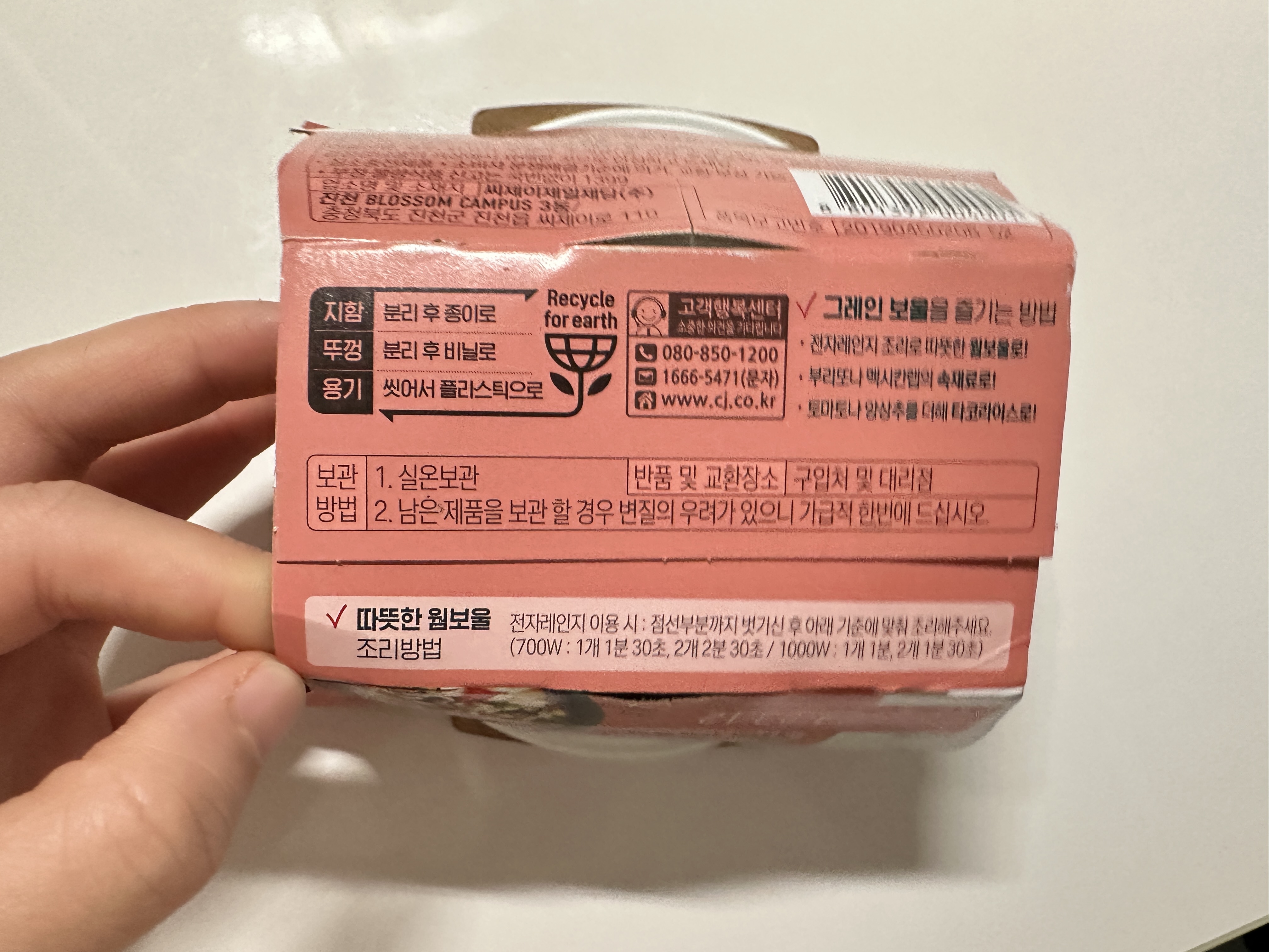 웜보울이라고 적혀있는걸 보니 웜볼인가봐요. 조리방법은 포장지를 점선까지 뜯고 1분 30초 돌리면 됩니다.